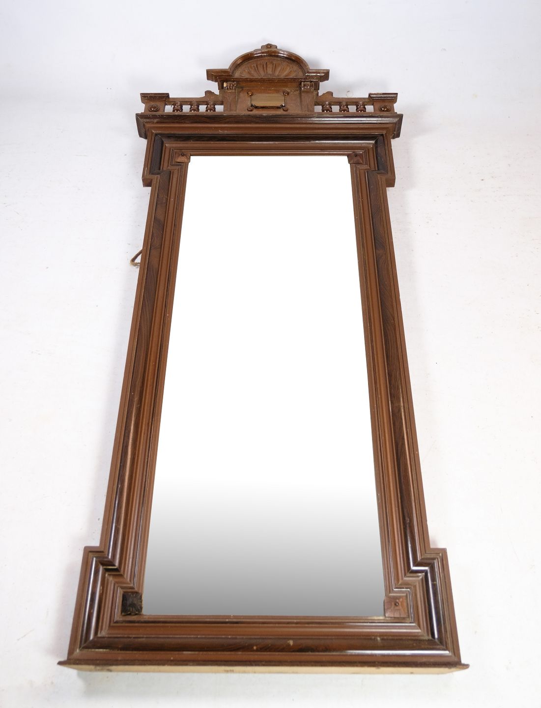 Mirror of hand-polished mahogany, with carvings, made in Denmark from around the 1880s