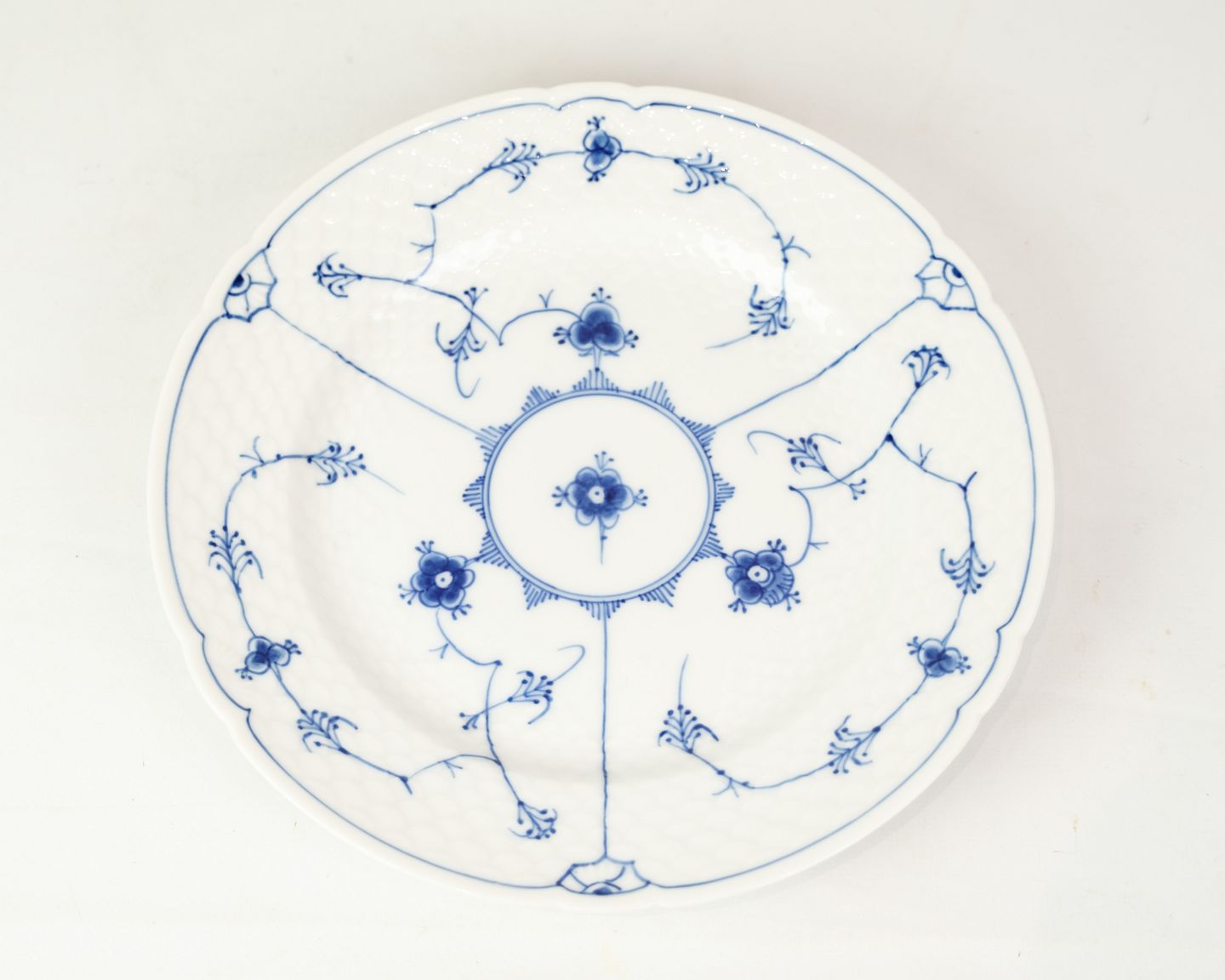 Dinner plate no. 025 from Bing & Grondahl. Made of porcelain with classic blue painted blue fluting decoration.