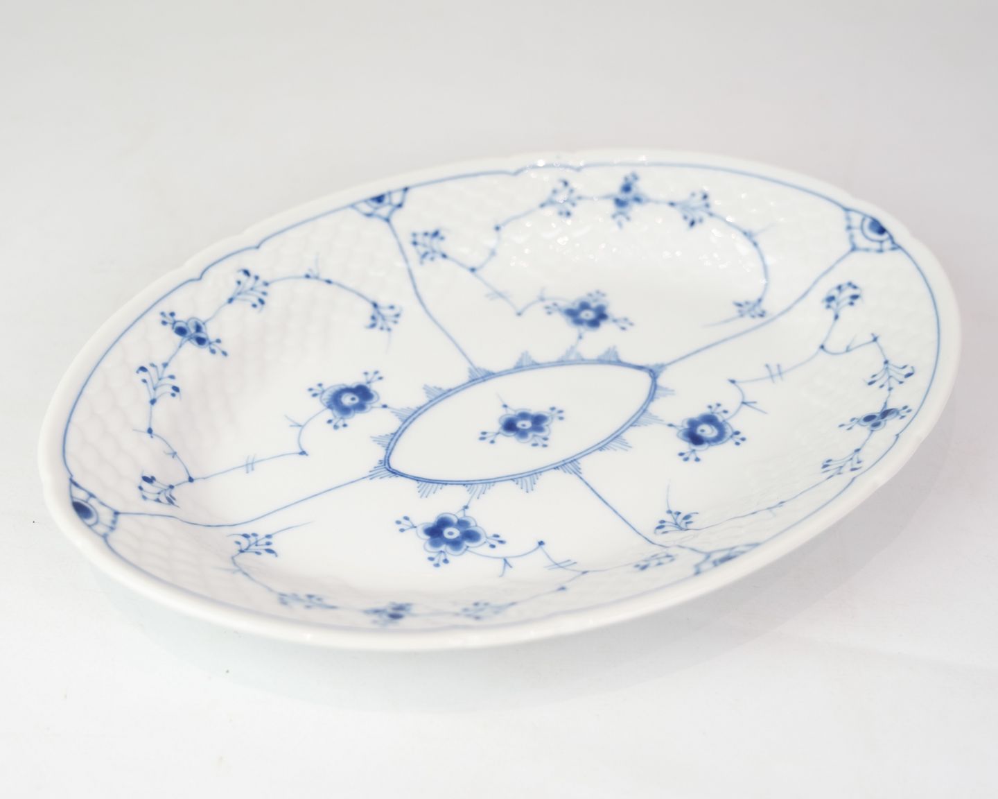Oval dish no. 17 from Bing & Grondahl. Made of porcelain with classic blue fluting design in hand-painted blue decoration.