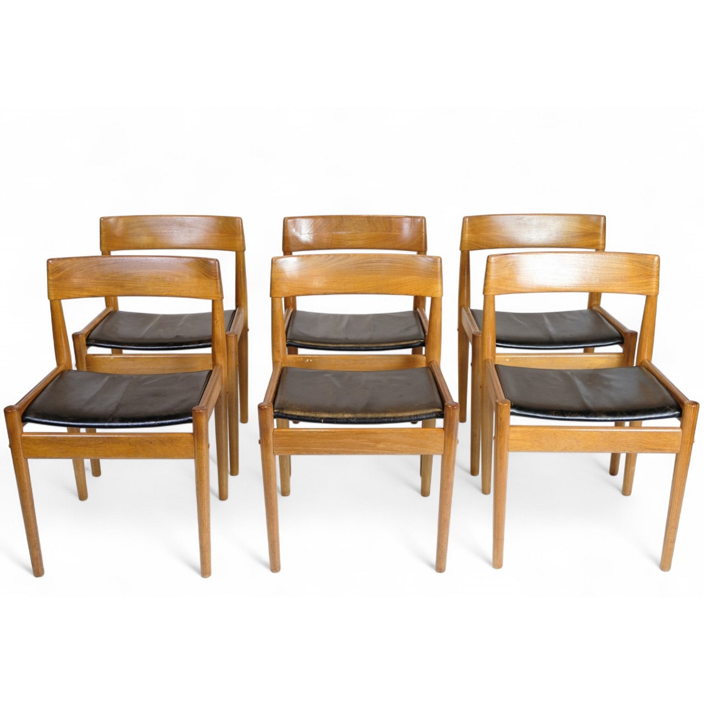 Set of 6 Dining Chairs - Model P H 3-2 - Teak and Black Leather - Grete Jalk - P. Jeppesen - 1960s