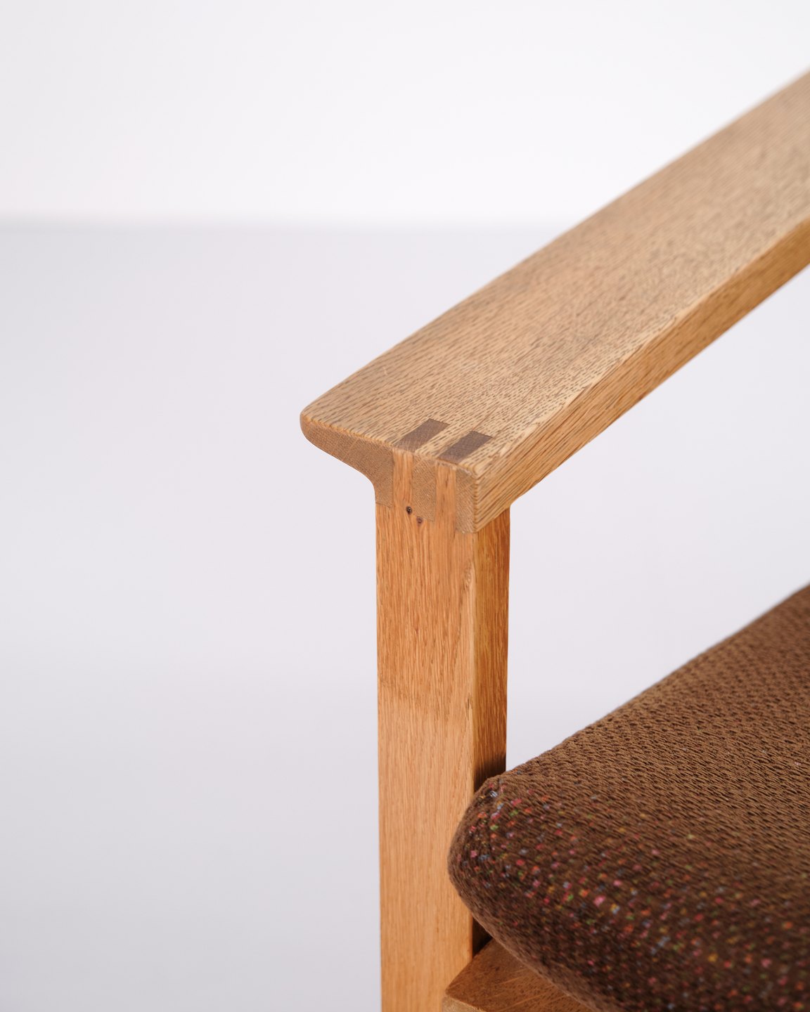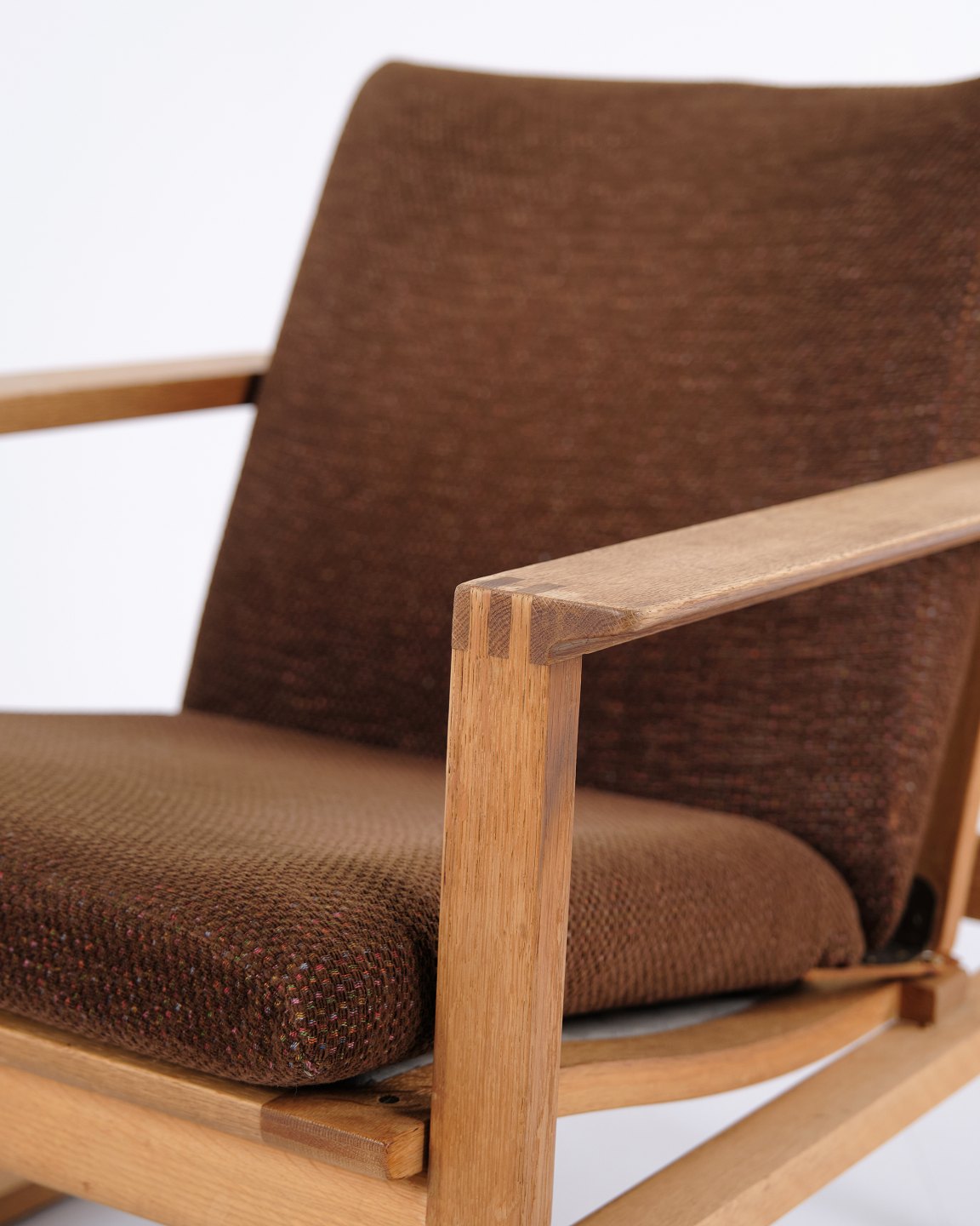 Børge Mogensen slædestol BM2256 fra Fredericia Stolefabrik. Egetræ med brune hynder.