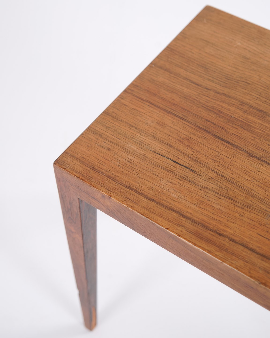 Sidebord eller natbord, model 41B, designet af Severin Hansen og fremstillet af Haslev Møbelfabrik i 1960’erne. Udført i palisander med de karakteristiske affasede samlinger, som kendetegner Hansens arbejde. Et elegant og eftertragtet stykke dansk design.
