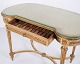 Antique desk from the 1850s in Gustavian/Louis XVI style, gilded wood, glass top and drawer.