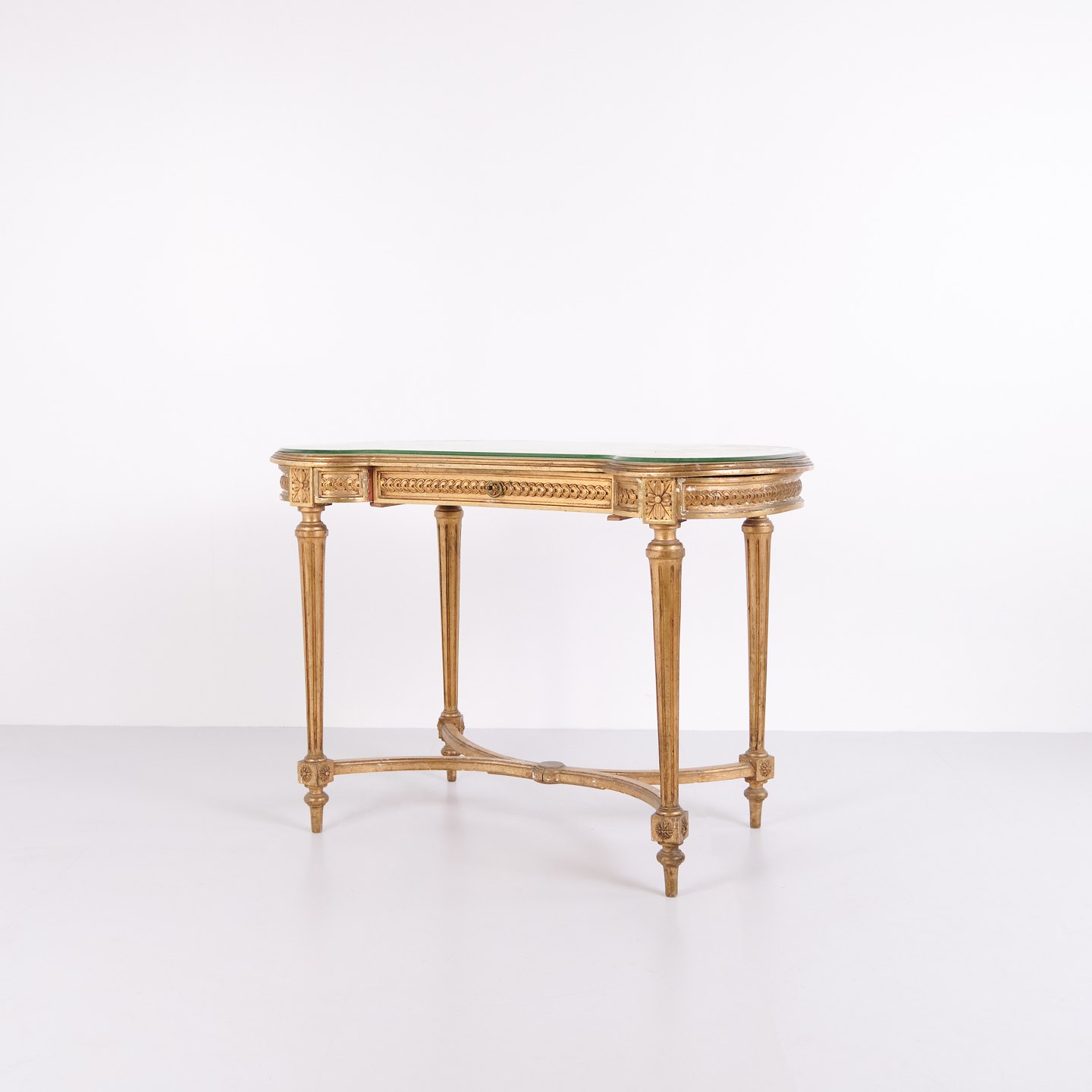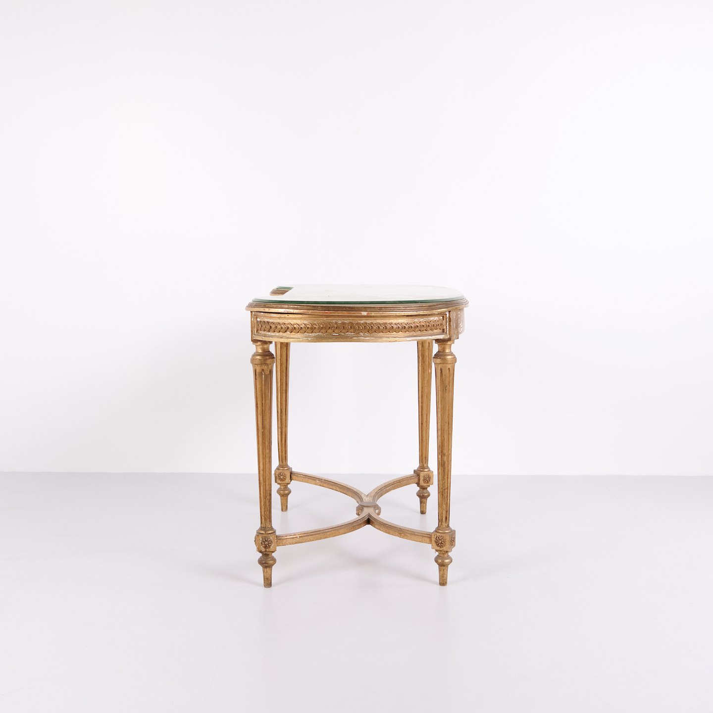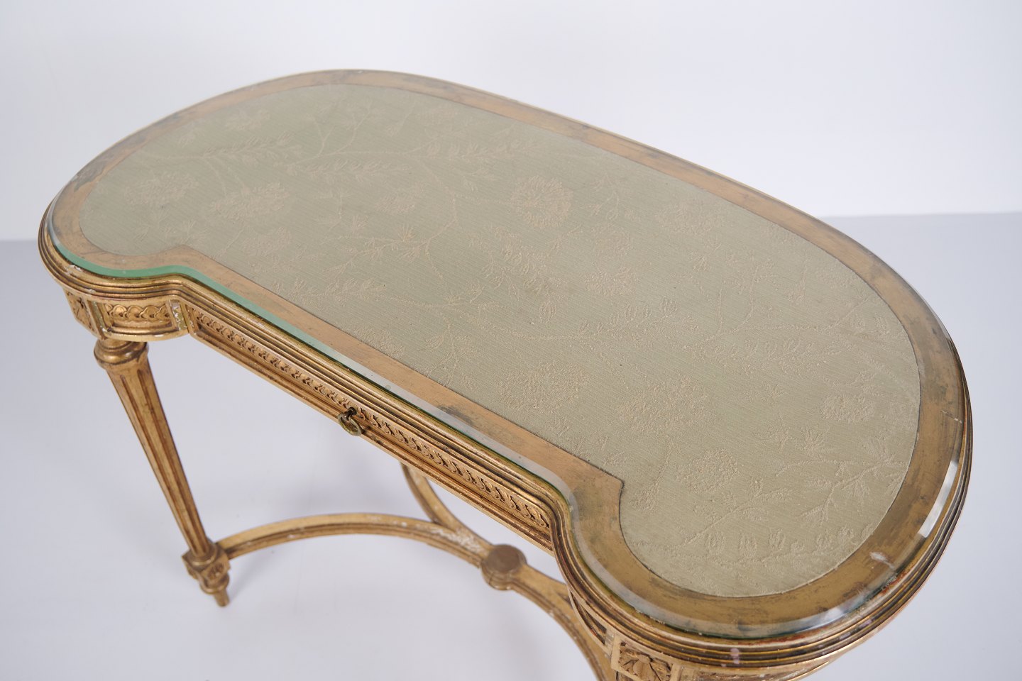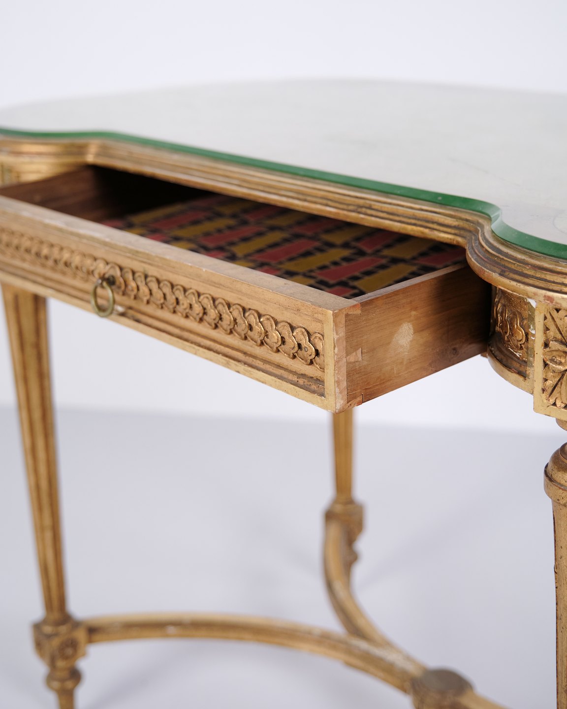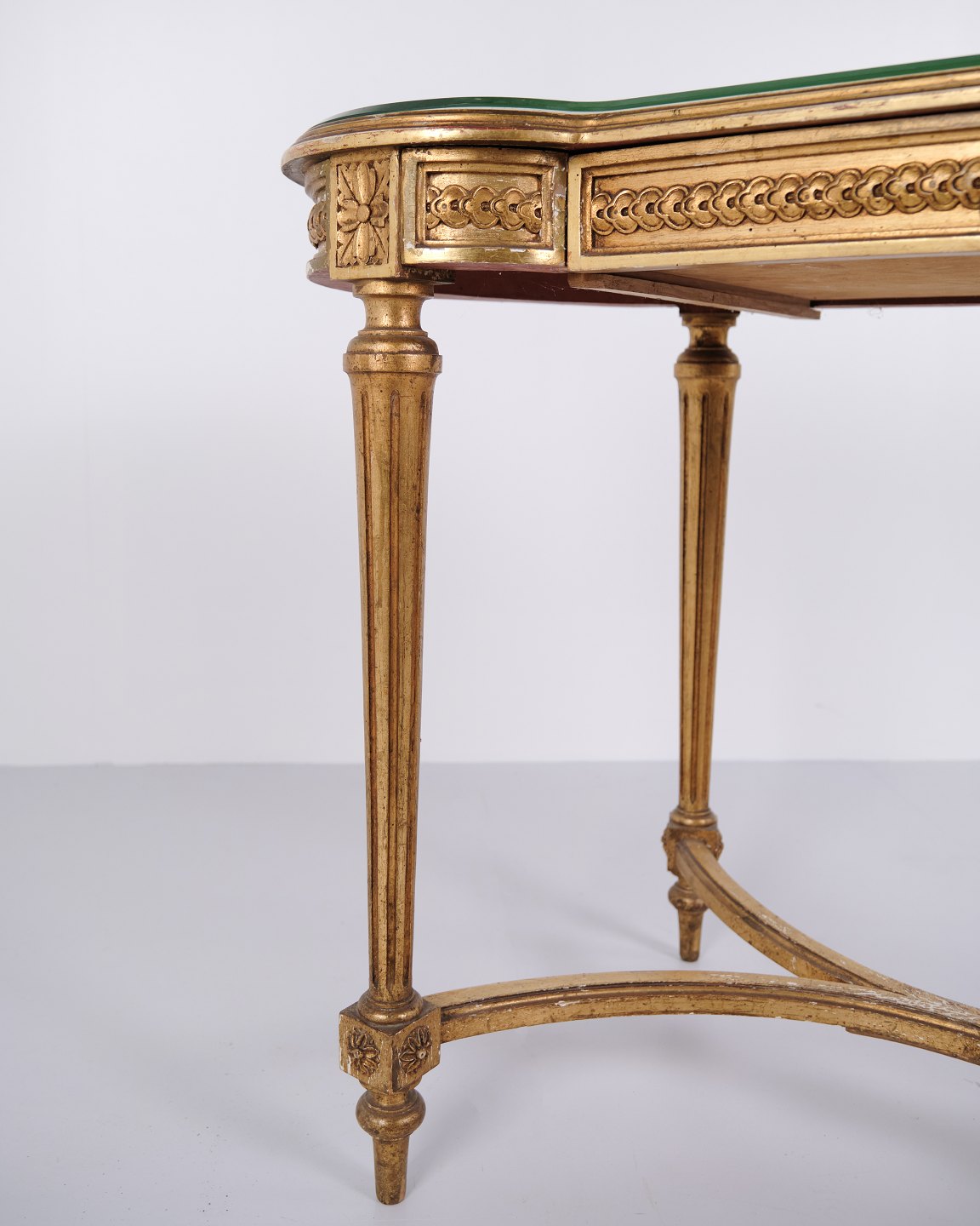 Antique Desk With Glass Top & Drawer – Gustavian/Louis XVI Style – Gilded Wood – 1850s