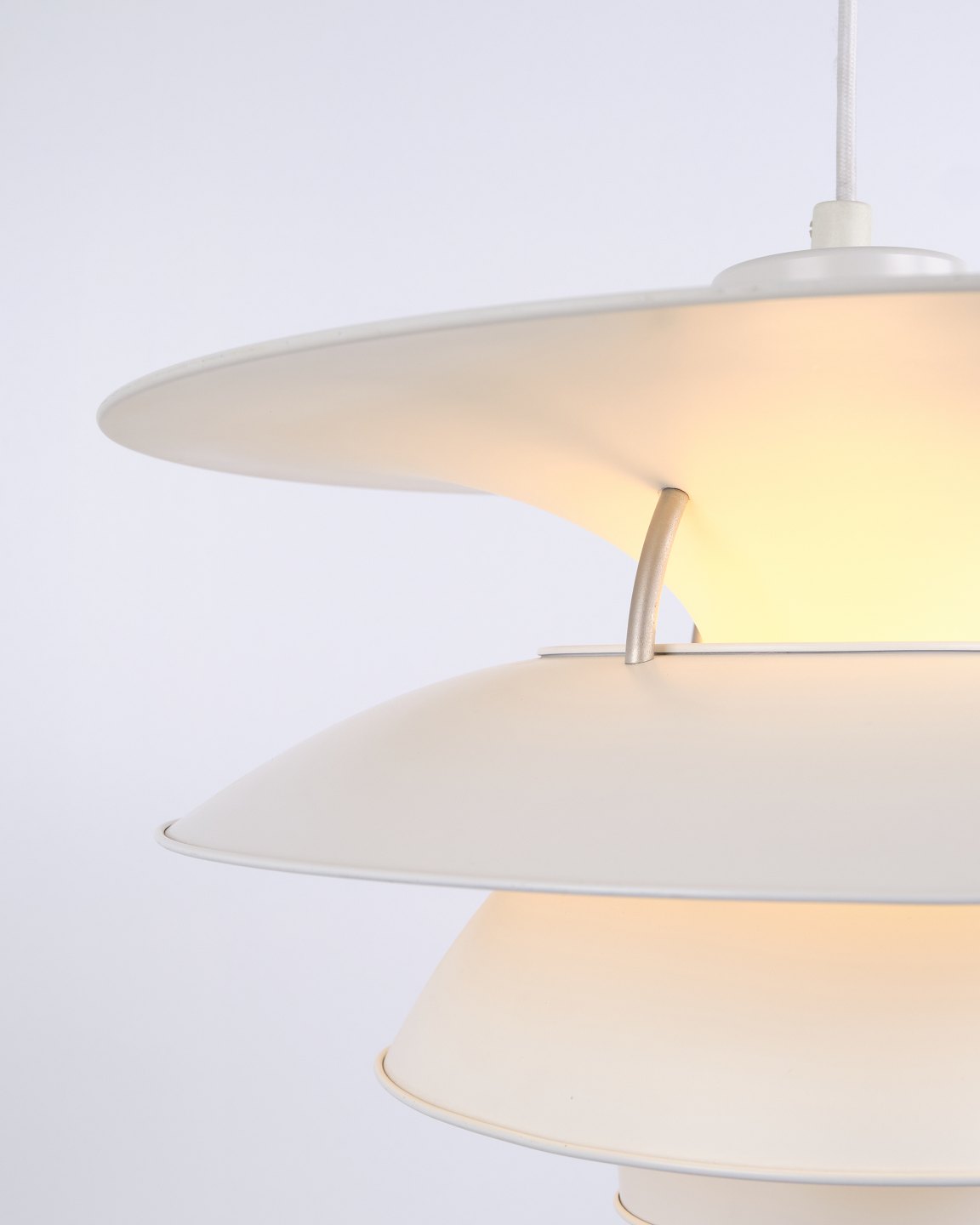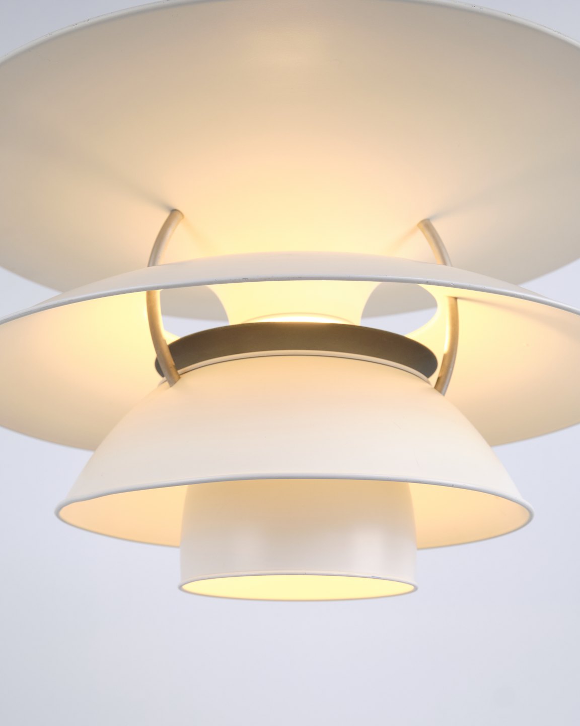 Charlottenborg pendant, model PH 5-4½, designed by Poul Henningsen and produced by Louis Poulsen in the 1980s. The lamp is based on the 4-shade system introduced in 1931 with the purpose of increasing light output and creating more efficient illumination in the room. The construction directs a greater amount of light horizontally, providing better lighting of walls and surroundings compared to traditional 3-shade lamps.
