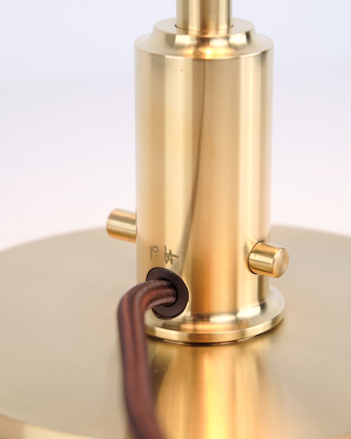 Exclusive PH 2/2 “The Question Mark” table lamp designed by Poul Henningsen and released as a Limited Edition in 2021 by Louis Poulsen. The lamp is made of brushed brass with white opal glass shades and features the characteristic curved form that gives the model its name.