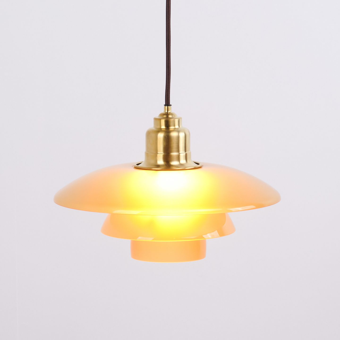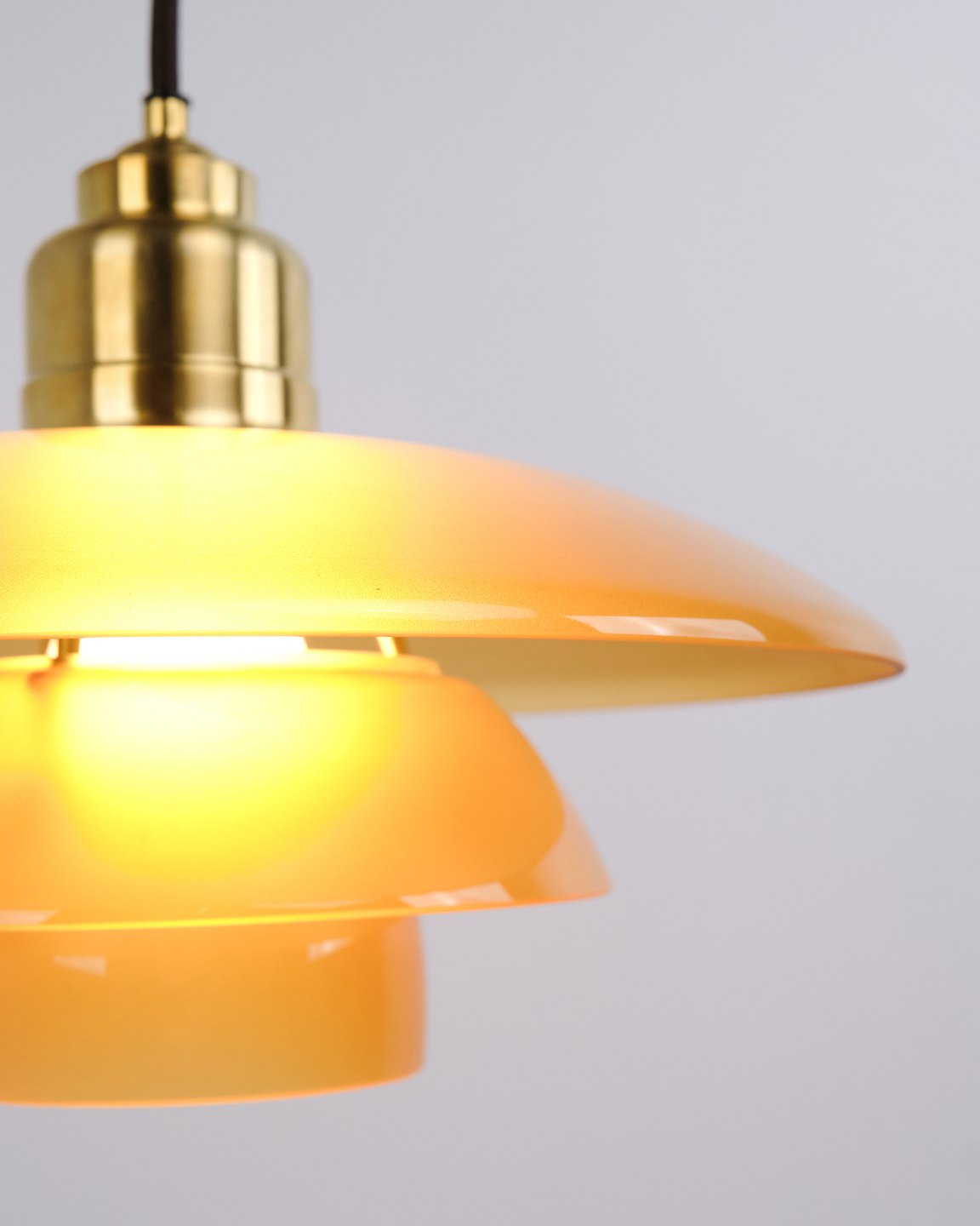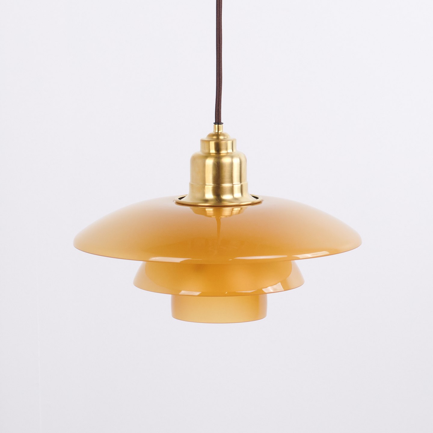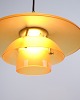 PH 3½-3 pendant designed by Poul Henningsen and released as a Limited Edition in 2017 by Louis Poulsen. The lamp features amber-coloured glass shades, creating a warm and atmospheric light. The model was only produced and sold for a short period, making it particularly sought after.