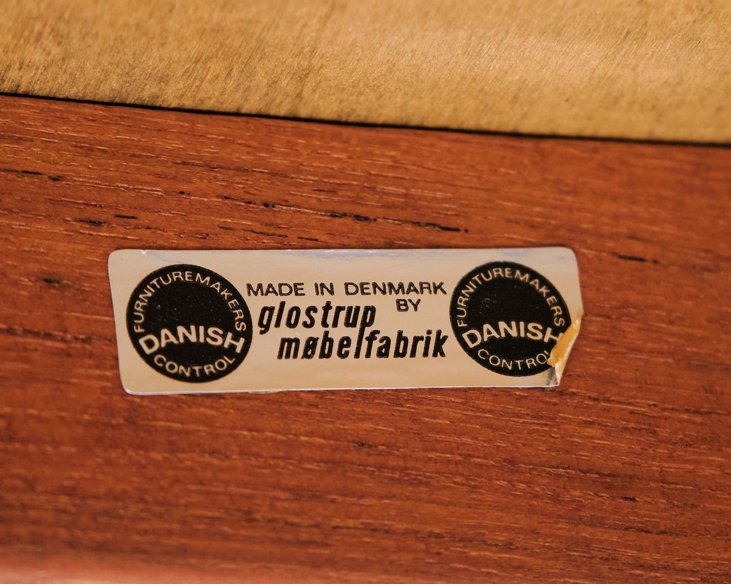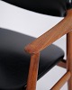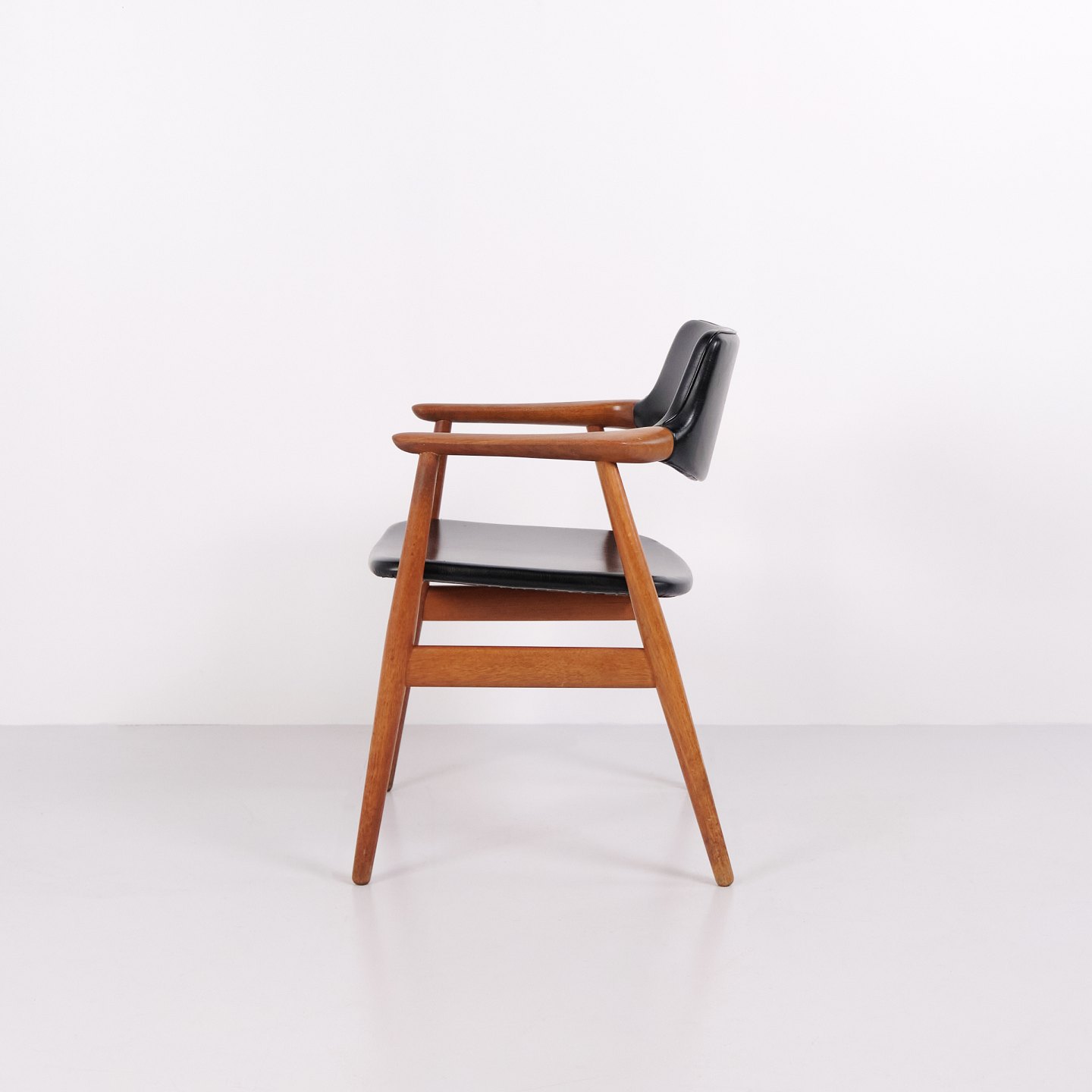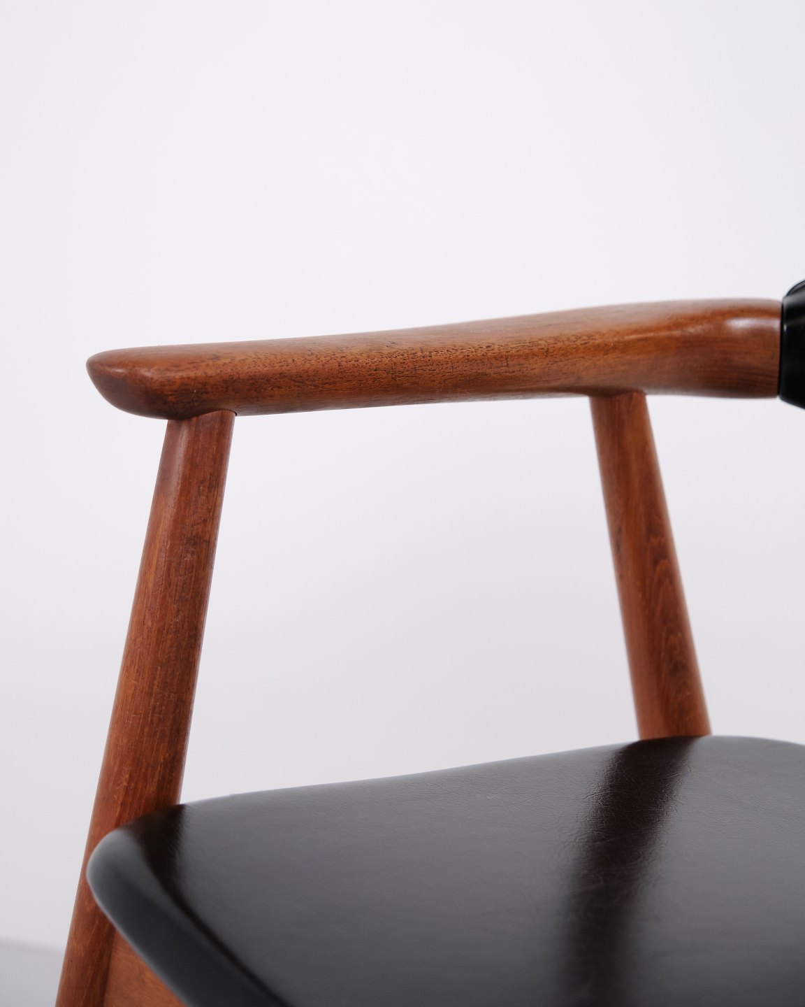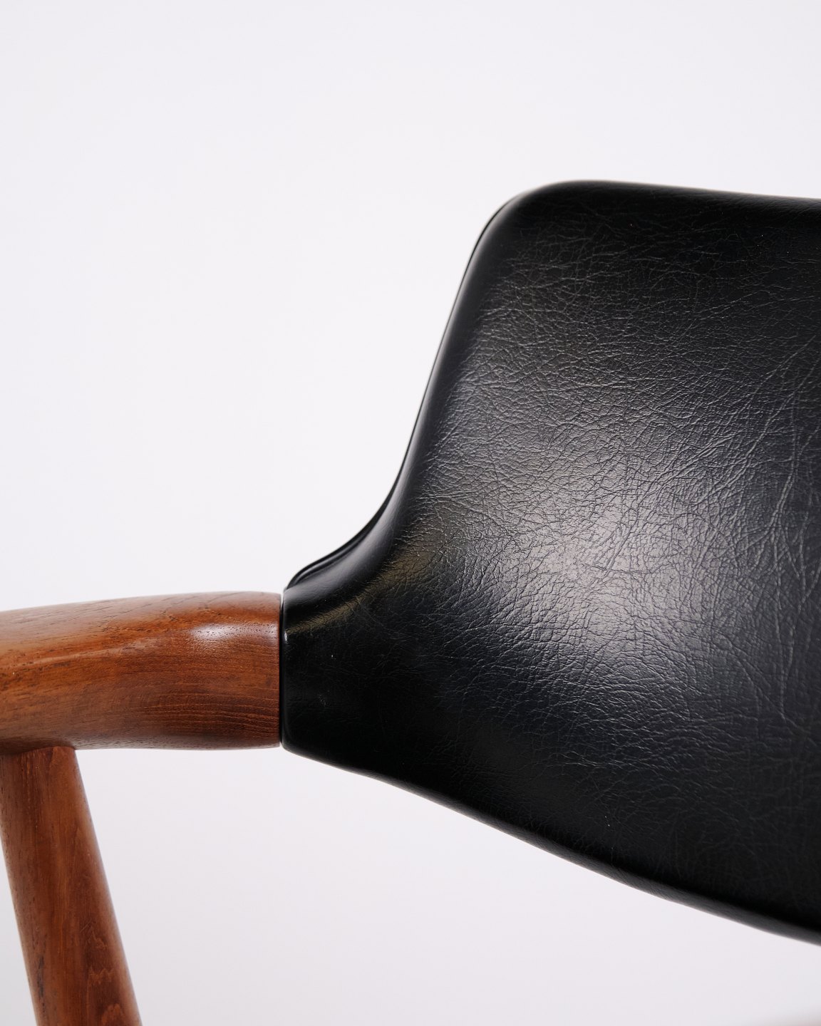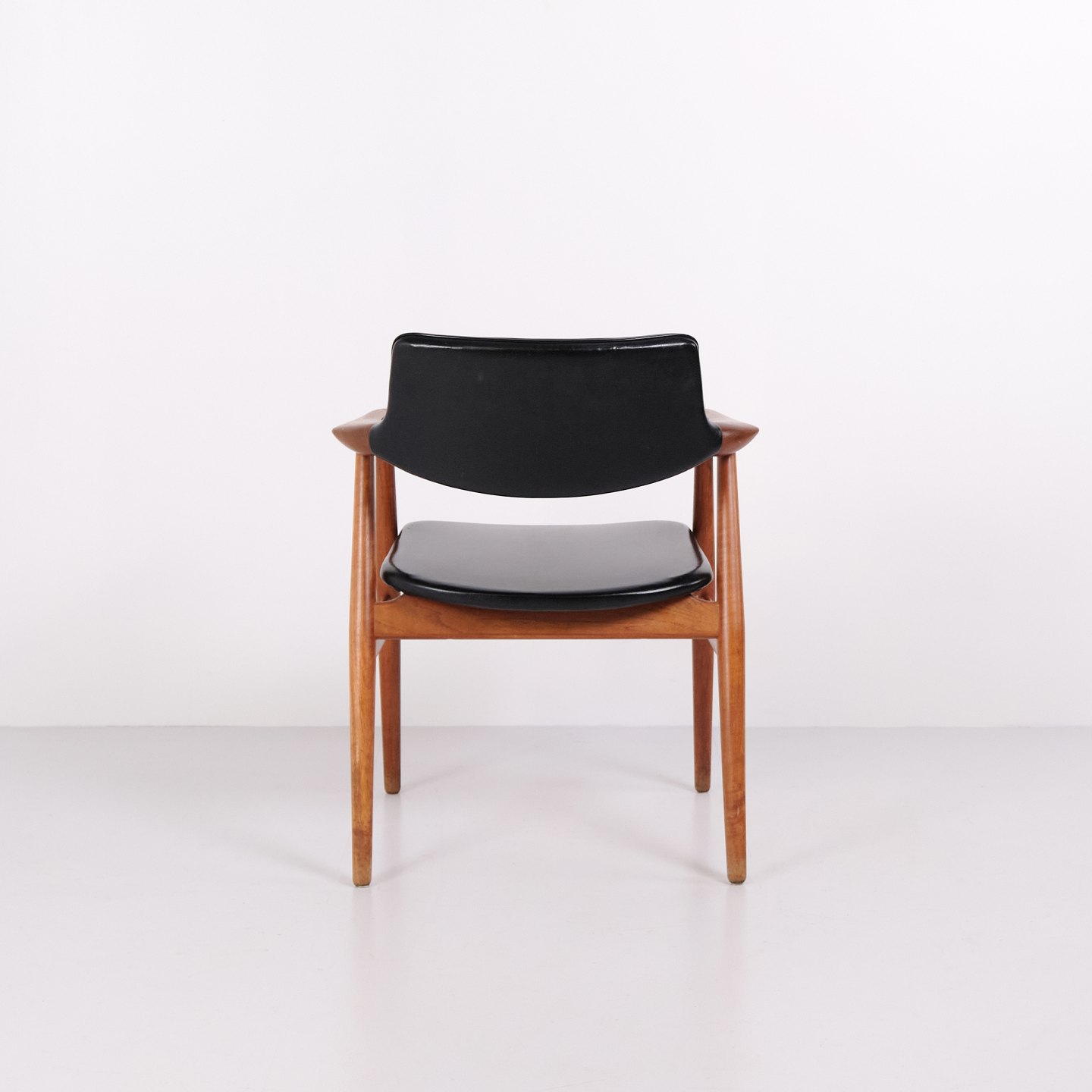 Set of 6 GM11 dining chairs designed by Svend Aage Eriksen for Glostrup Møbelfabrik in the 1960s. Crafted in solid teak with black leather seats and backs. Model GM11 is known for its organic lines, gently curved armrests and high seating comfort. A classic example of Danish mid-century design with fine cabinetmaking details and elegant proportions. Sold only as a complete set.