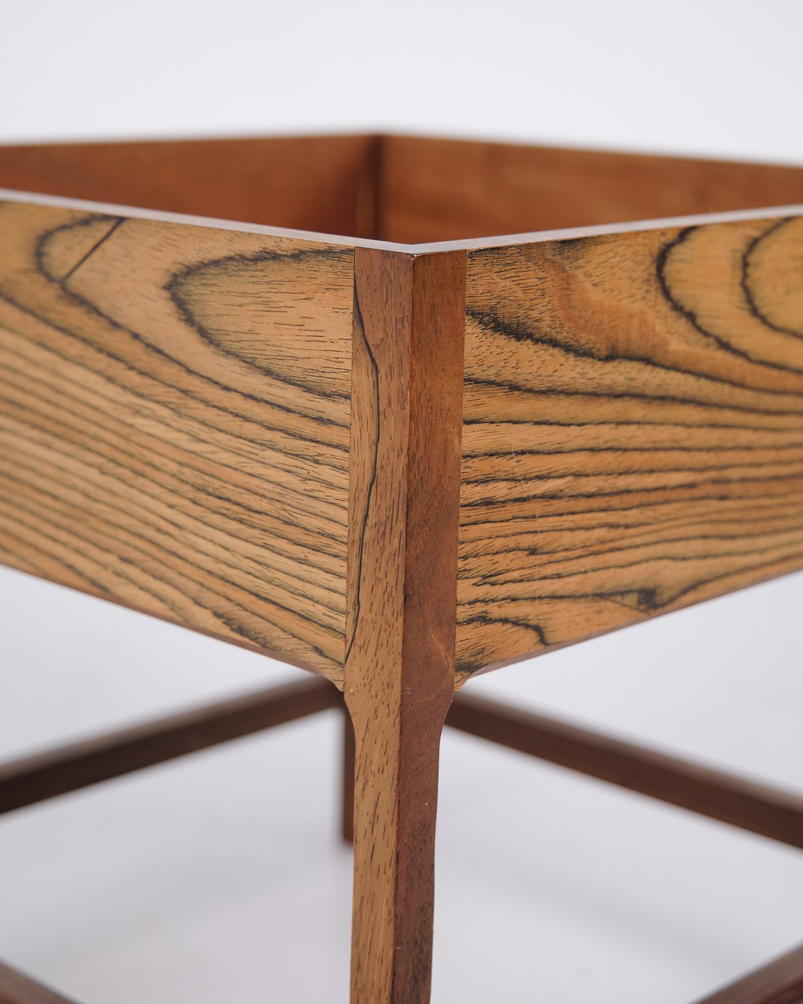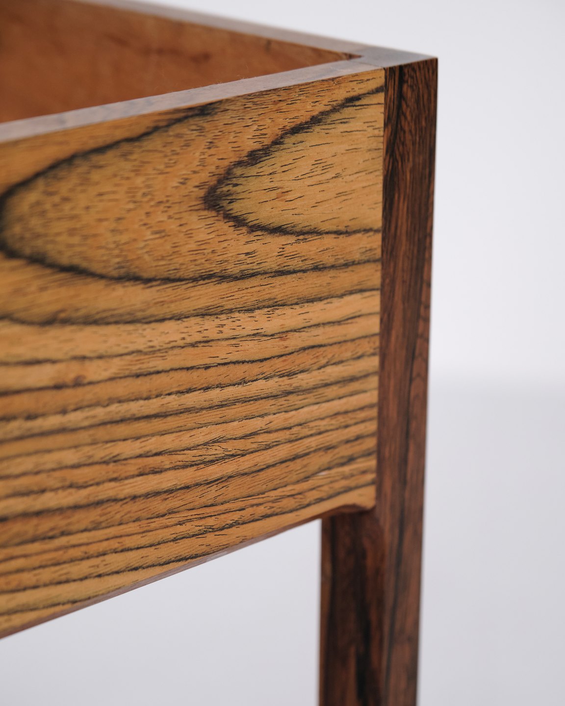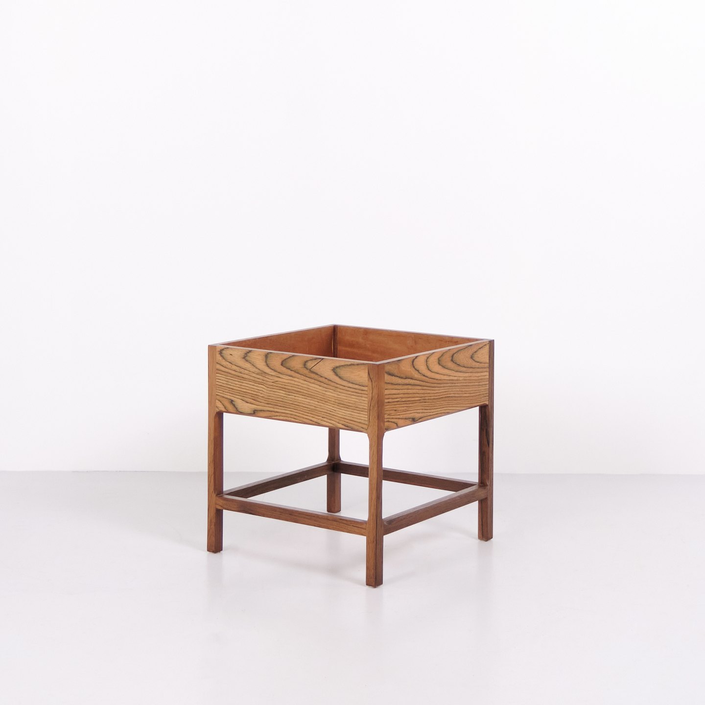 Planter box designed by Kai Kristiansen for Aksel Kjersgaard in the 1960s. Crafted in rosewood with visible grain and sharp cabinetmaker details. The square form and elevated construction reflect the clean lines of Danish modern design. Aksel Kjersgaard was known for high-quality production and collaborations with leading Danish designers. Suitable as a planter, interior feature or storage piece.