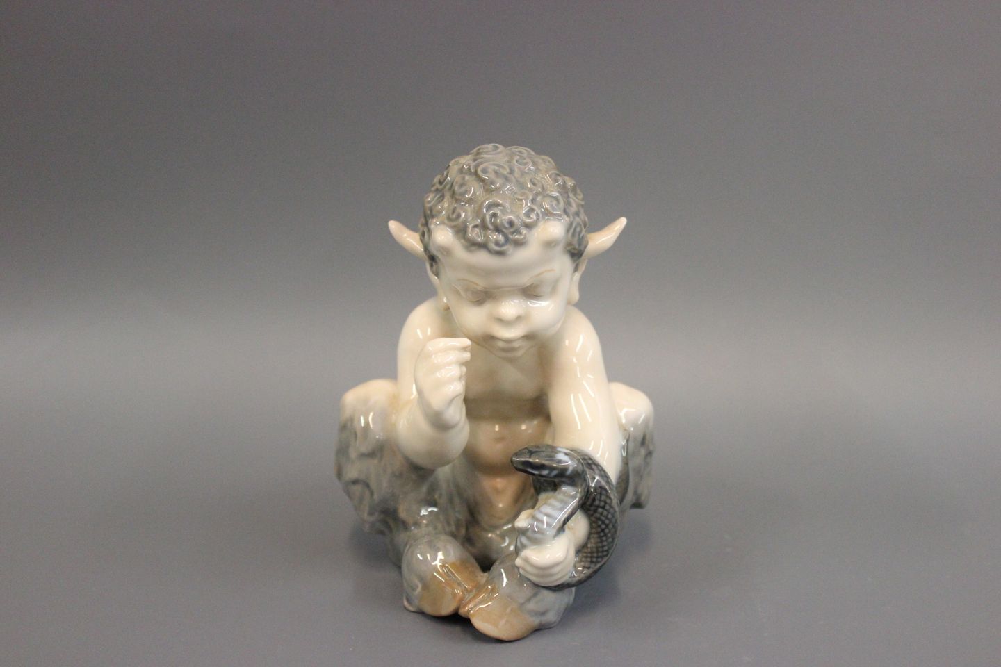 Kongelig porcelænsfigur,Faun med slange, nr. 1712. Figuren er fra 1962.