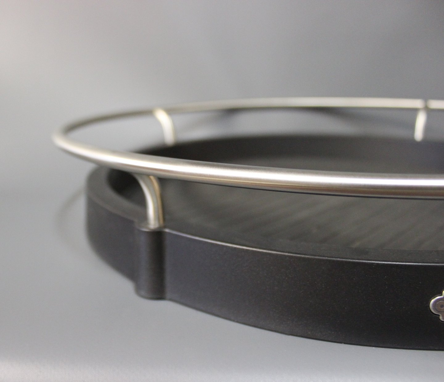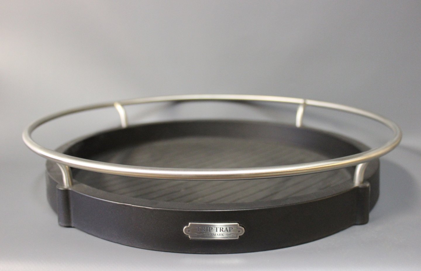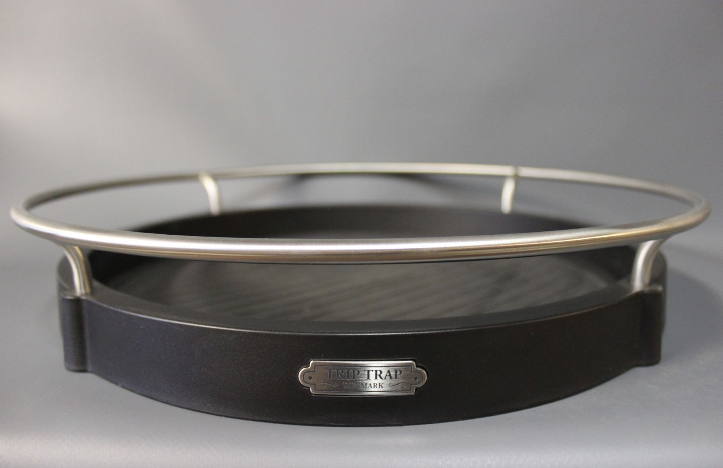 SoldTrip Trap serving tray in black plastic and metal edge.