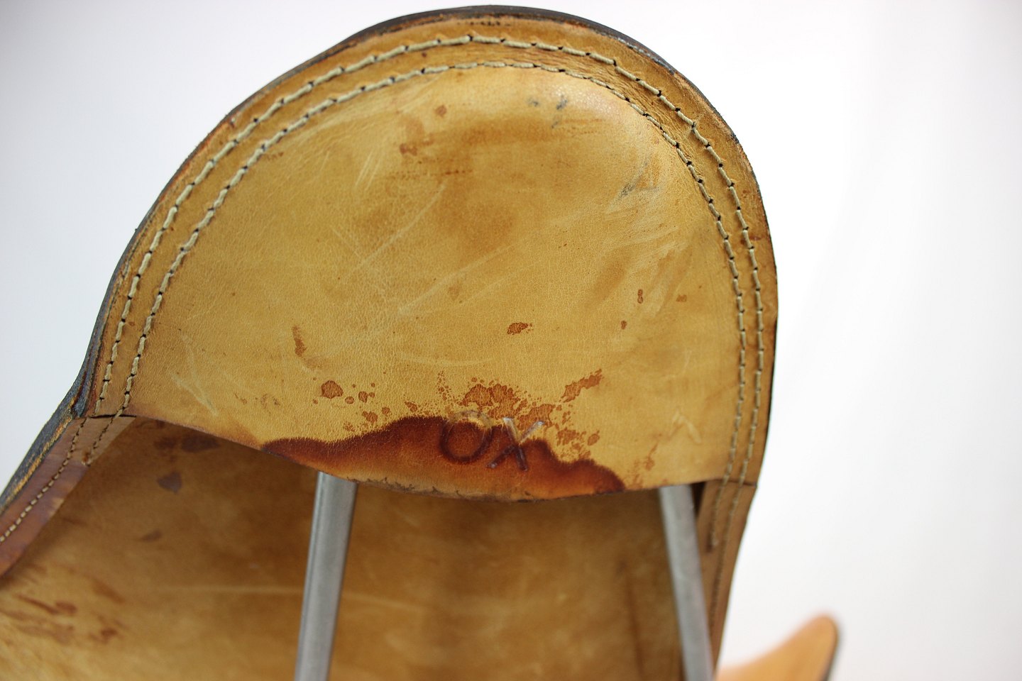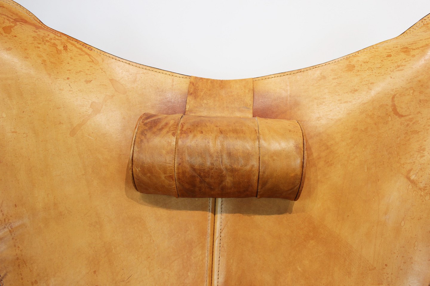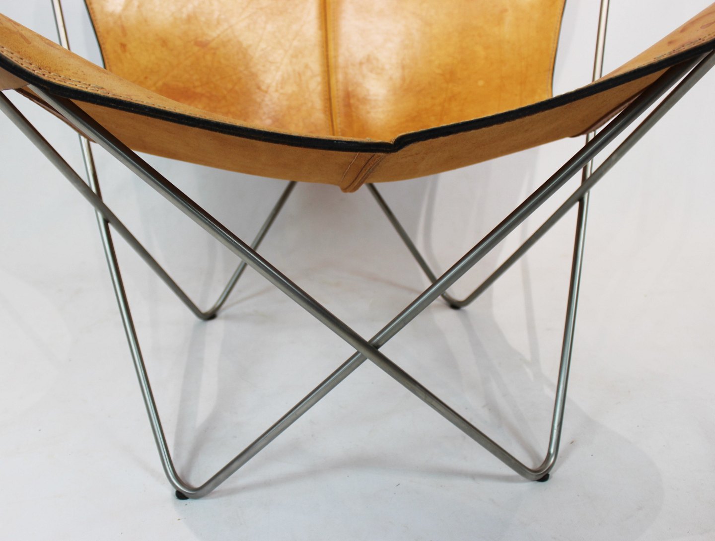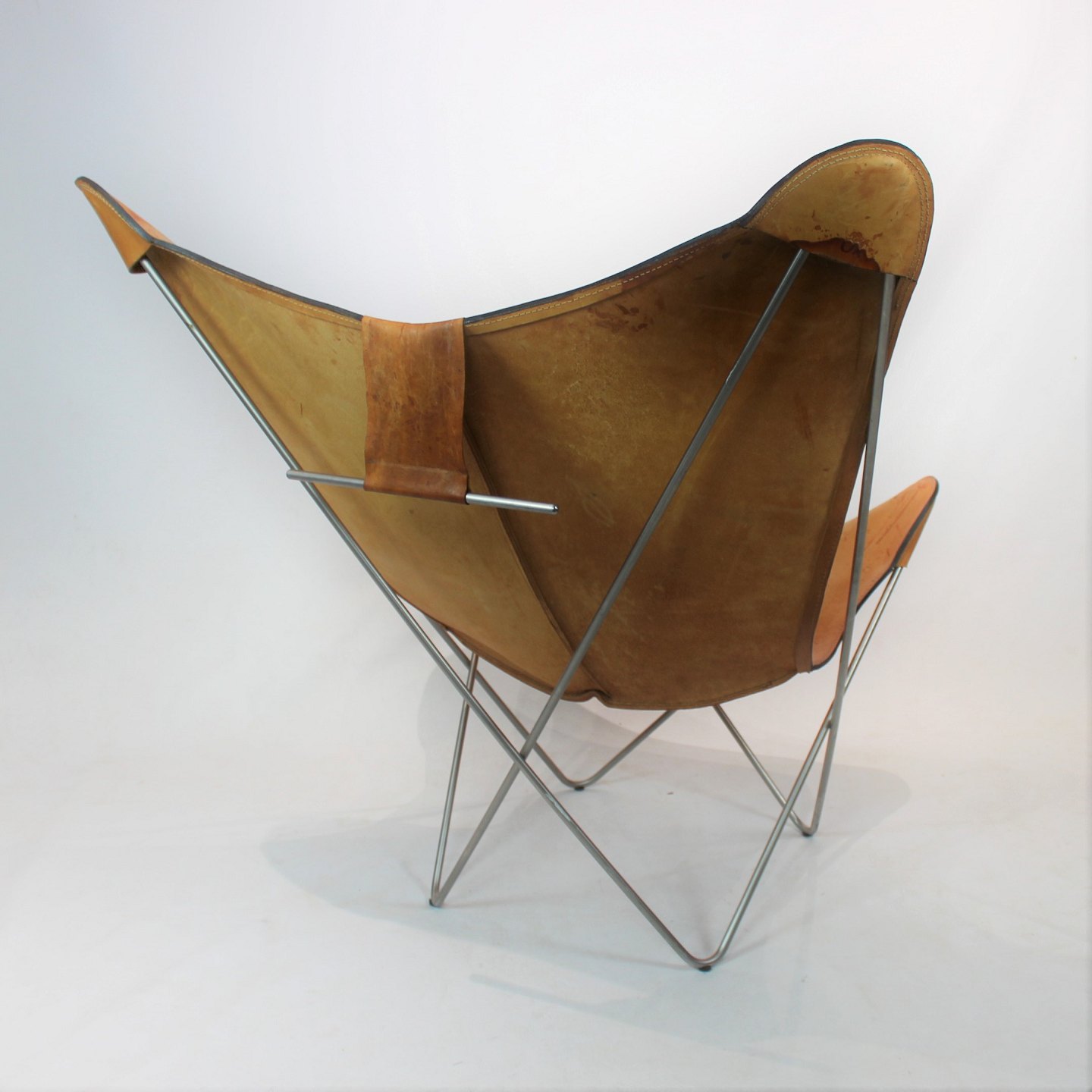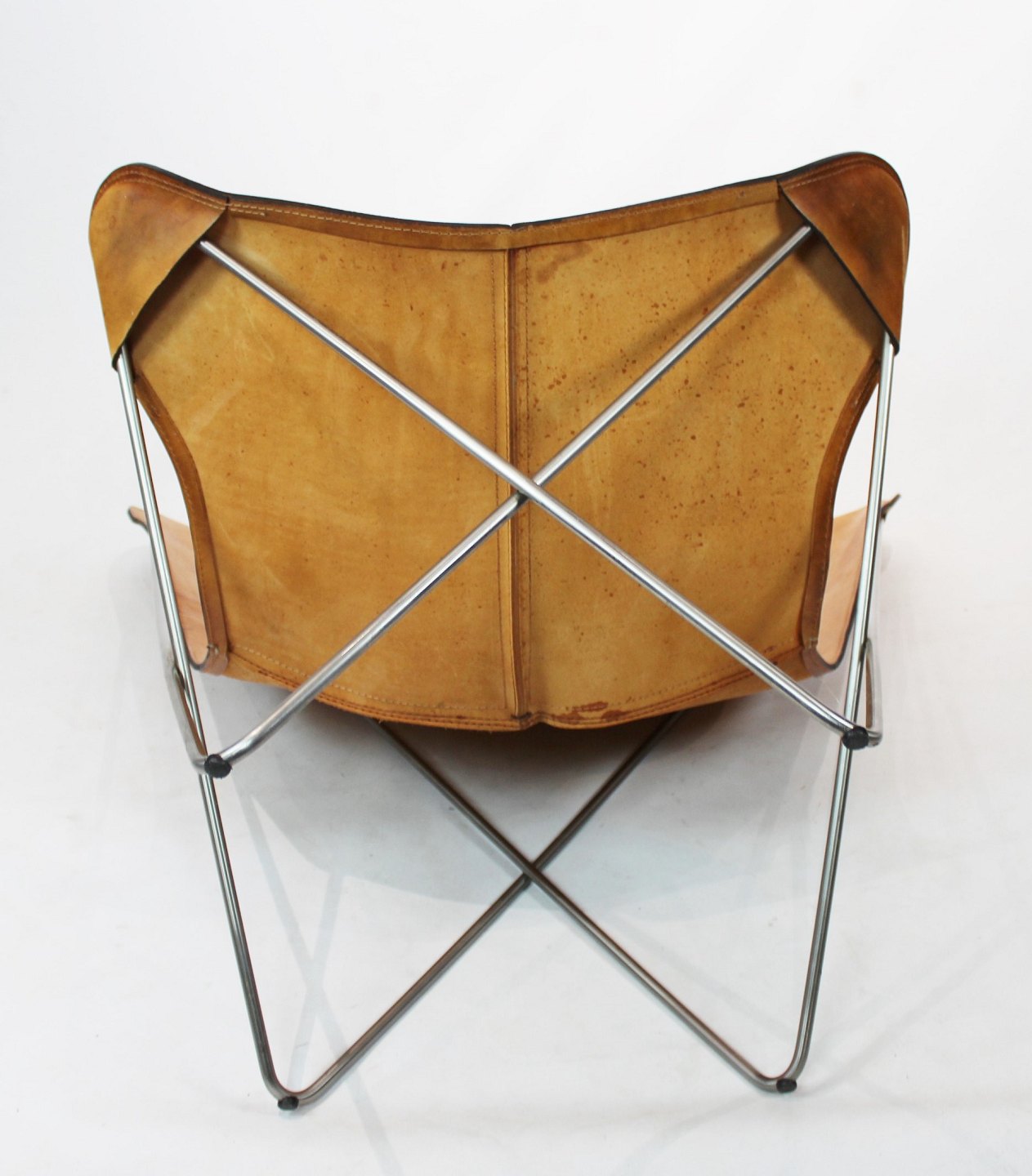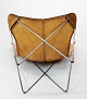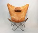 SoldButterfly chair, KS chair, with neck pillow designed by Dennis Marquart and manufactured by OX Denmarq. The chair is of patinated cognac leather and in great vintage condition.