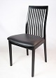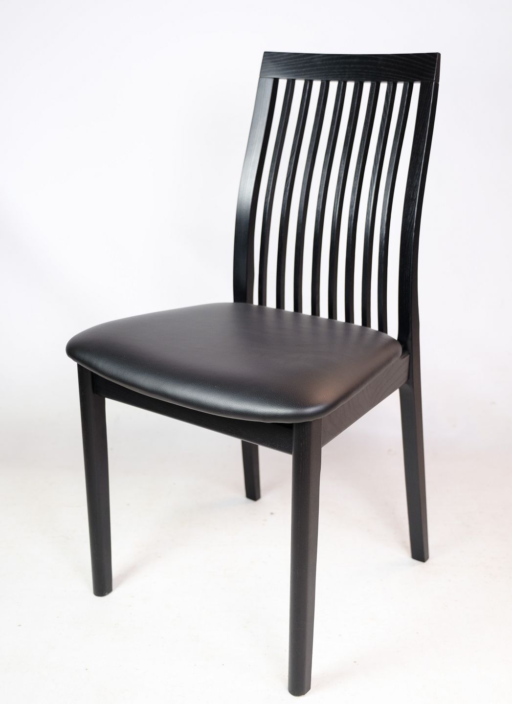 SoldSet of 4 dining chairs, model 712, in black stained ash manufactured by K. Høffer Larsen A/S. Medium-height dining chair, with vertical sticks in the back, which provides good sitting comfort.