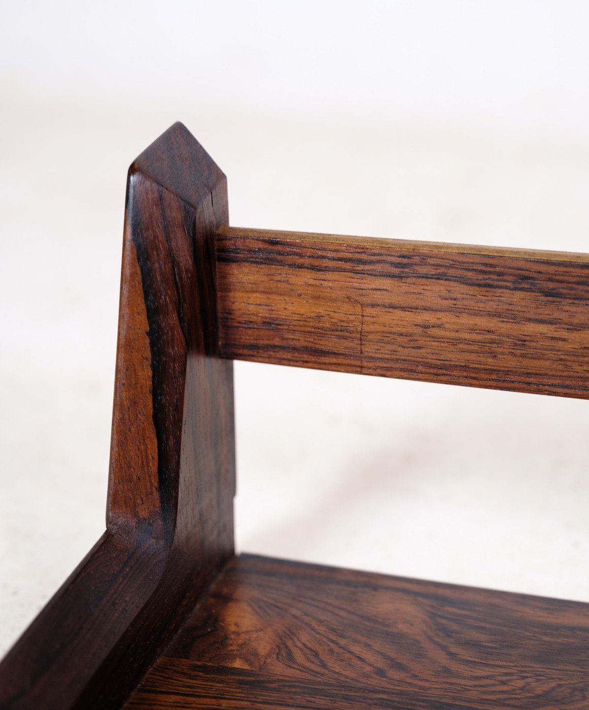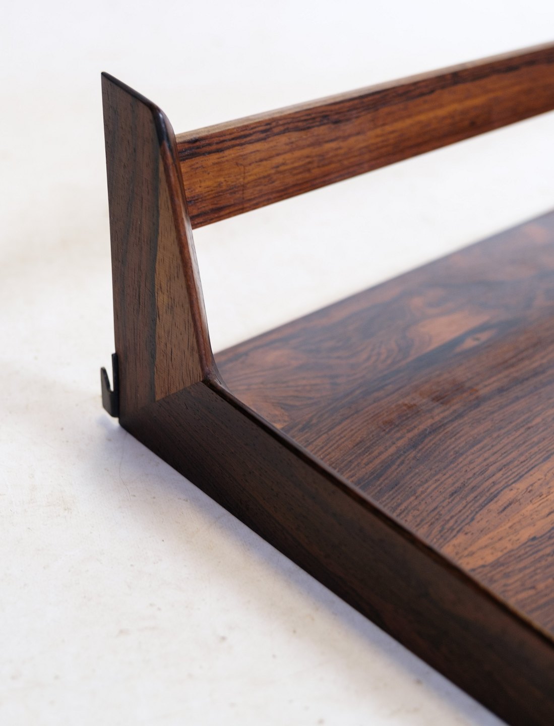 The beautiful colors and natural pattern of rosewood give a luxurious feel to any room. With Kai Kristiansen's characteristic focus on simplicity and functionality, these shelves are not only beautiful, but also practical for storing and displaying your belongings. We have shelves in stock so you can add a piece of design history to your home right away.