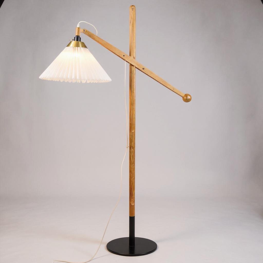SoldFloor lamp, model 325 by Le Klint, designed by Vilhelm Wohlert in teak with original shade from around the 1950s, Denmark. It is a rather sought-after floor lamp, due to its age and good condition.