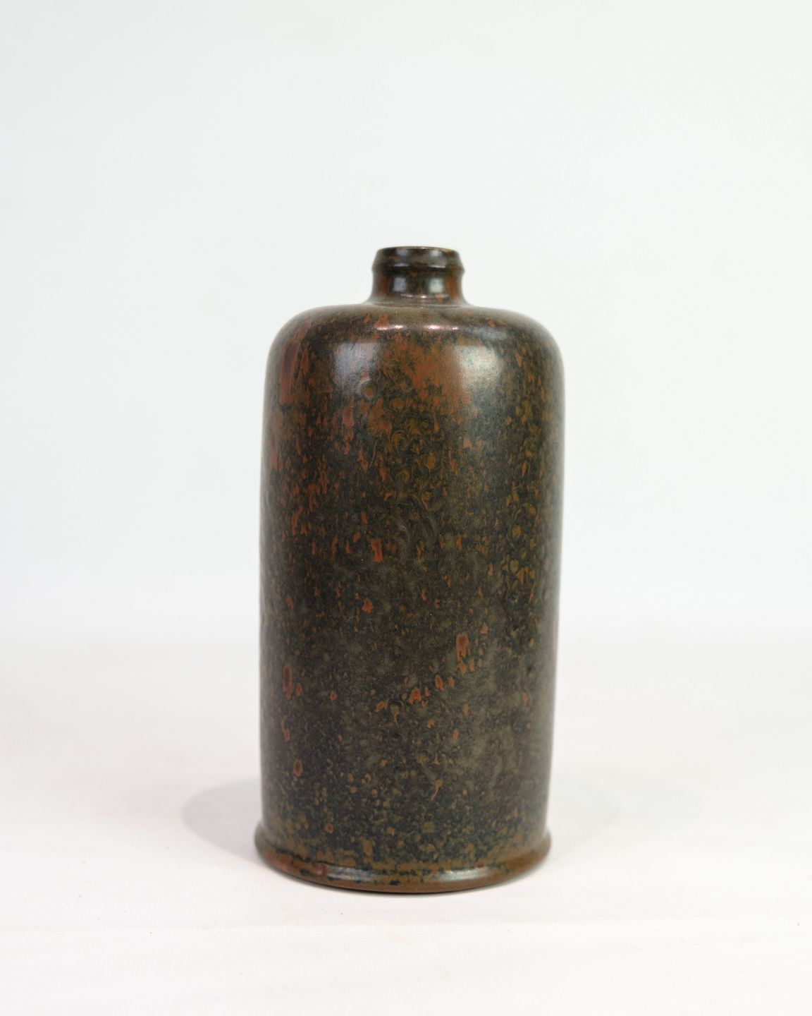 Ceramic vase from the 1940s designed by Nathalie Krebs for Saxbo. Made of characteristic stoneware with nuanced glaze in warm orange and brownish tones.