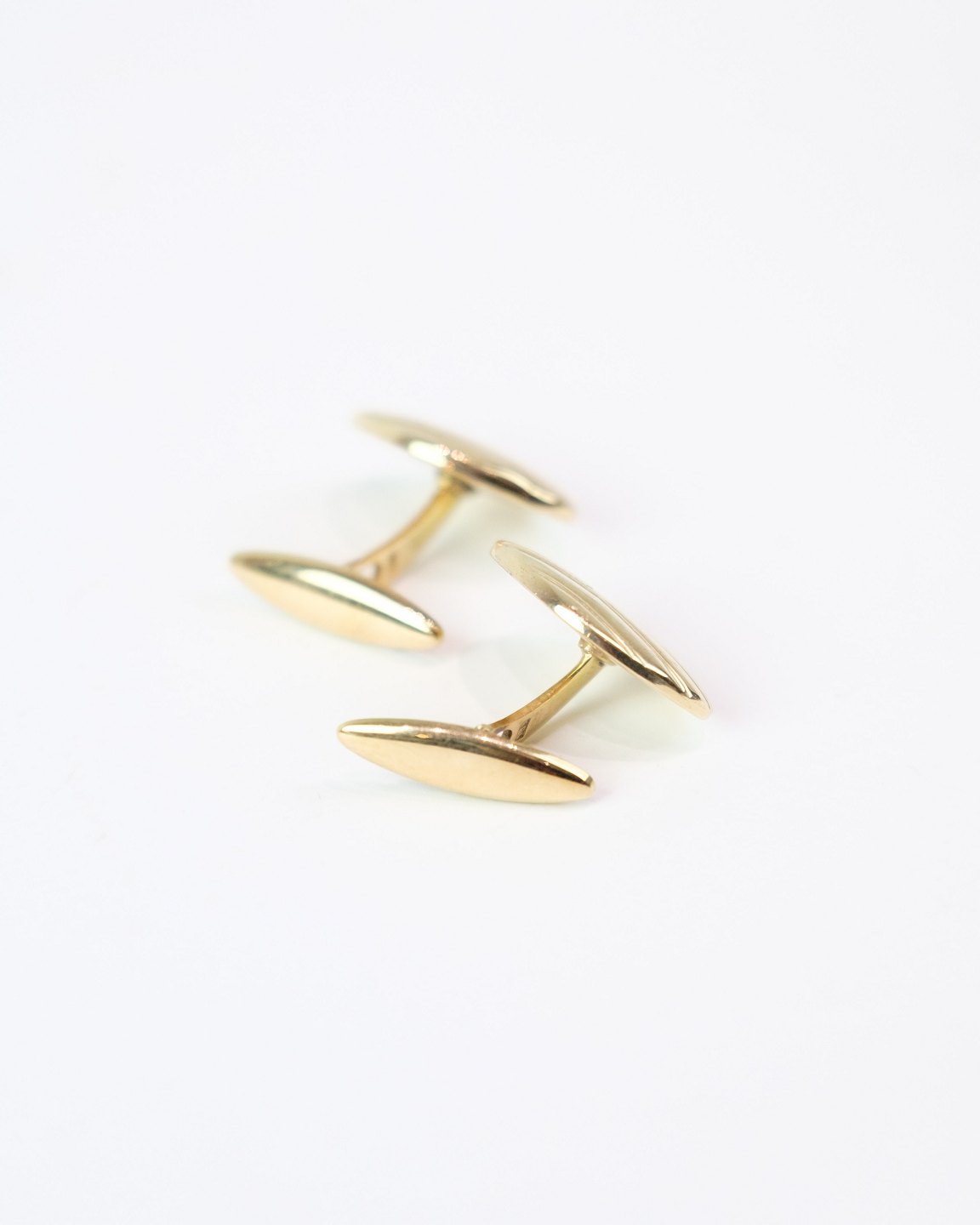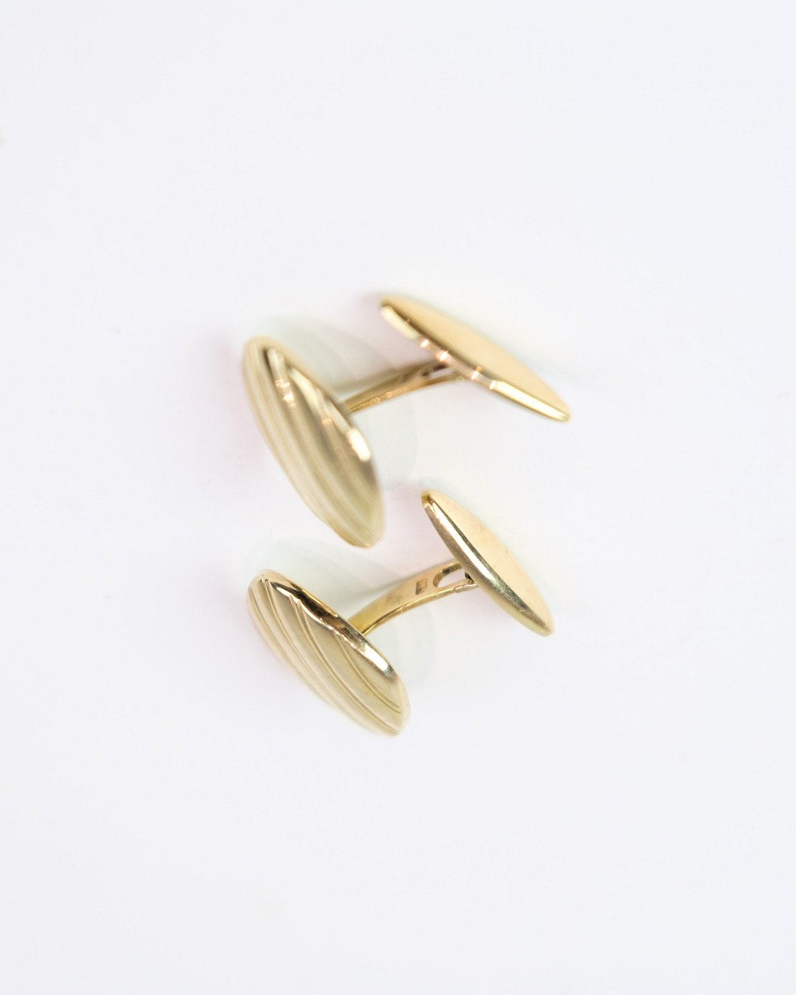 Please contact us for price informationCufflinks in 14 kt. gold, stamped 585. Grooved design. L: 2 cm, Dia: 1.5 cm. Weight: 6.7 g. Classic men's jewelry.