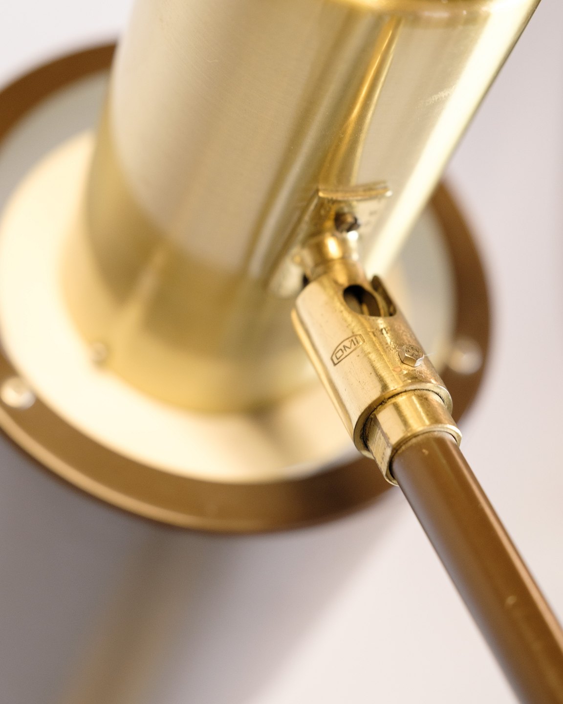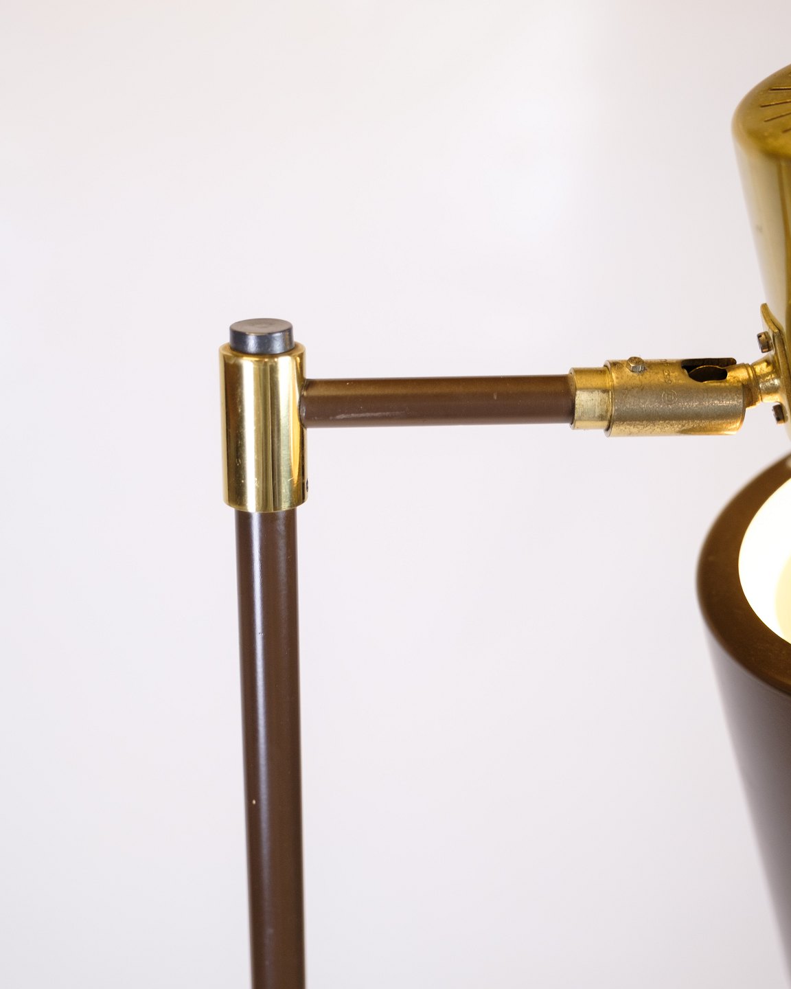 The lamp is made of brown lacquered metal combined with brass details, which gives a sophisticated and period-typical expression.