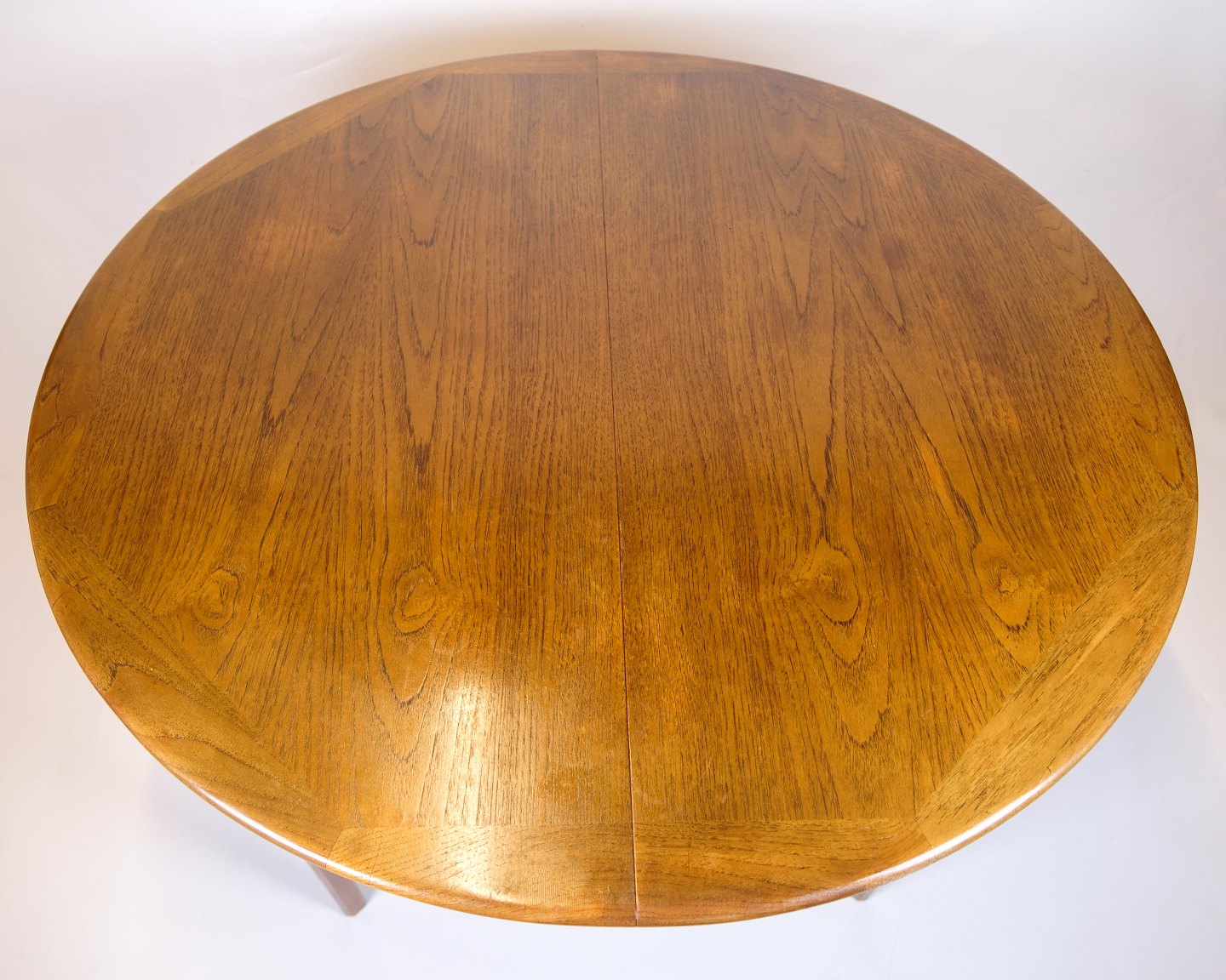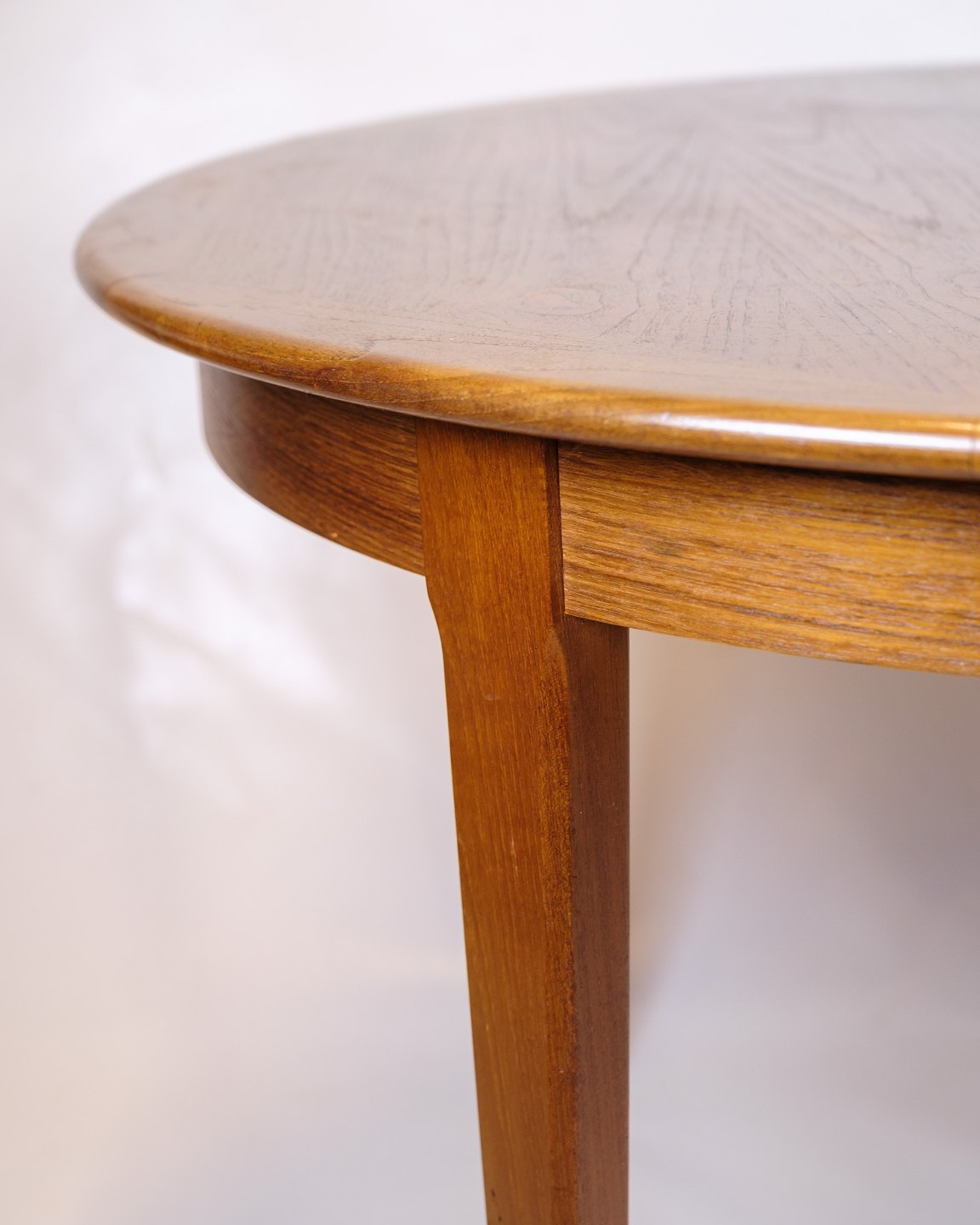 Round teak dining table from the 1960s with 2 extension leaves of 50 cm. Danish design.