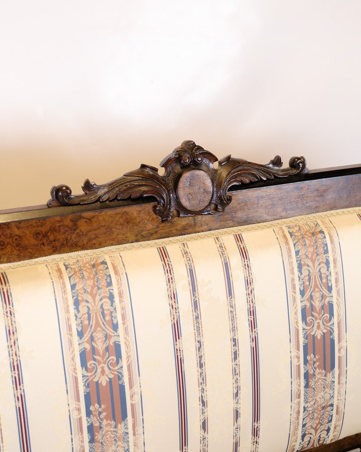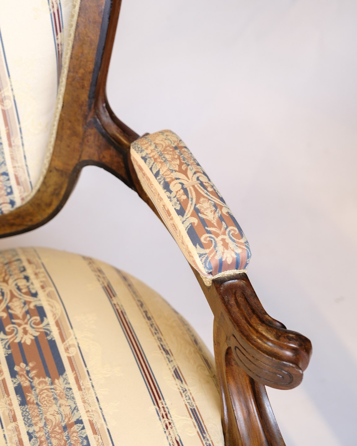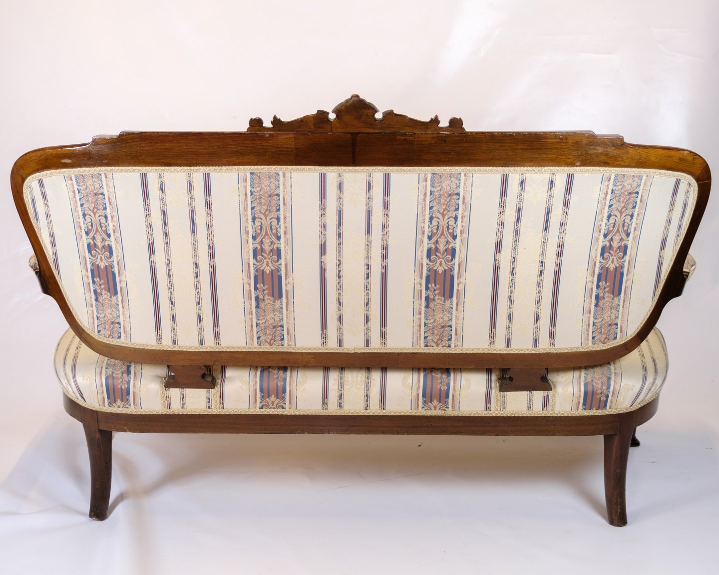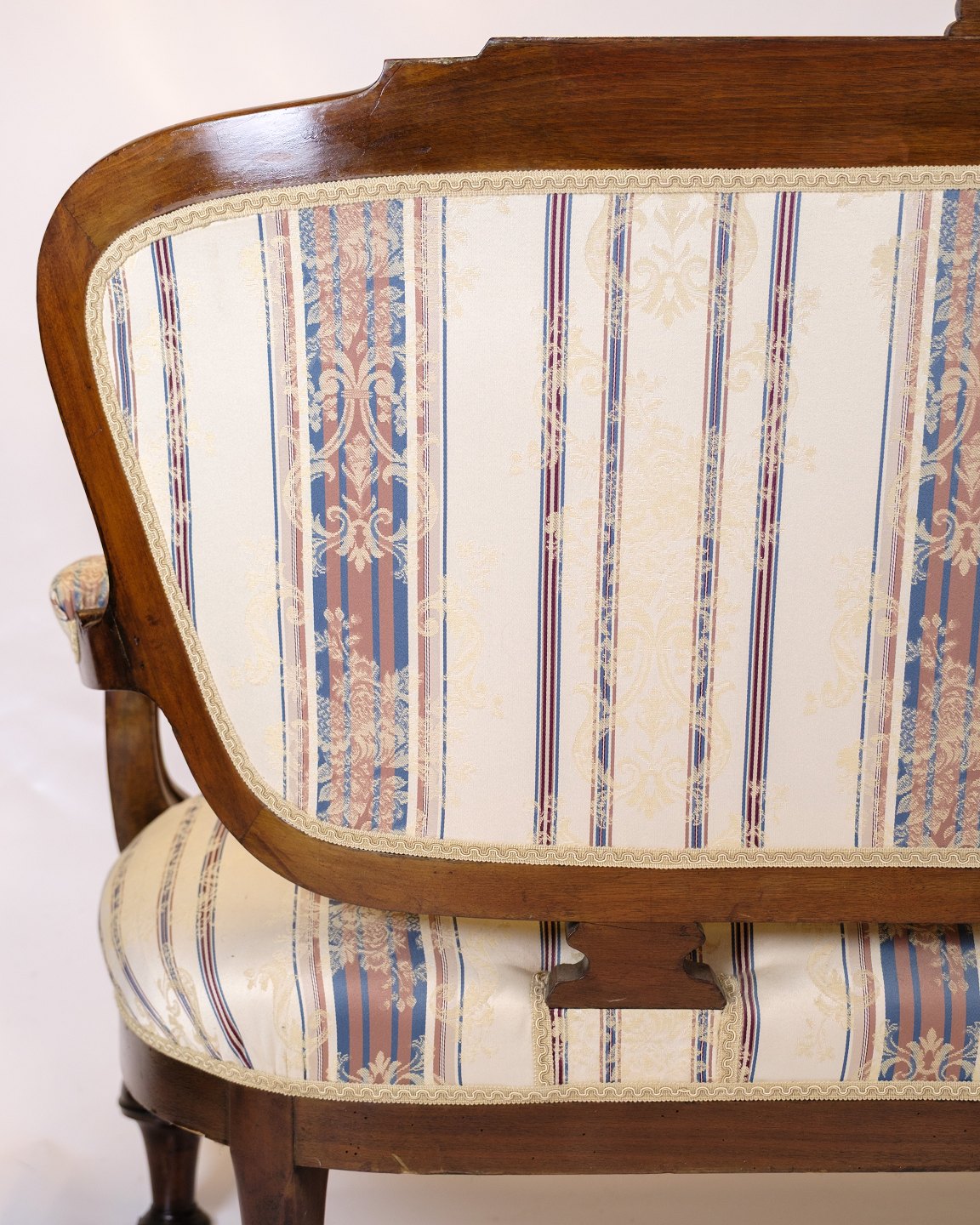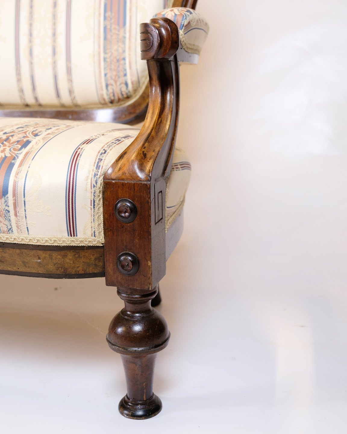 Materials: Walnut, striped upholstery