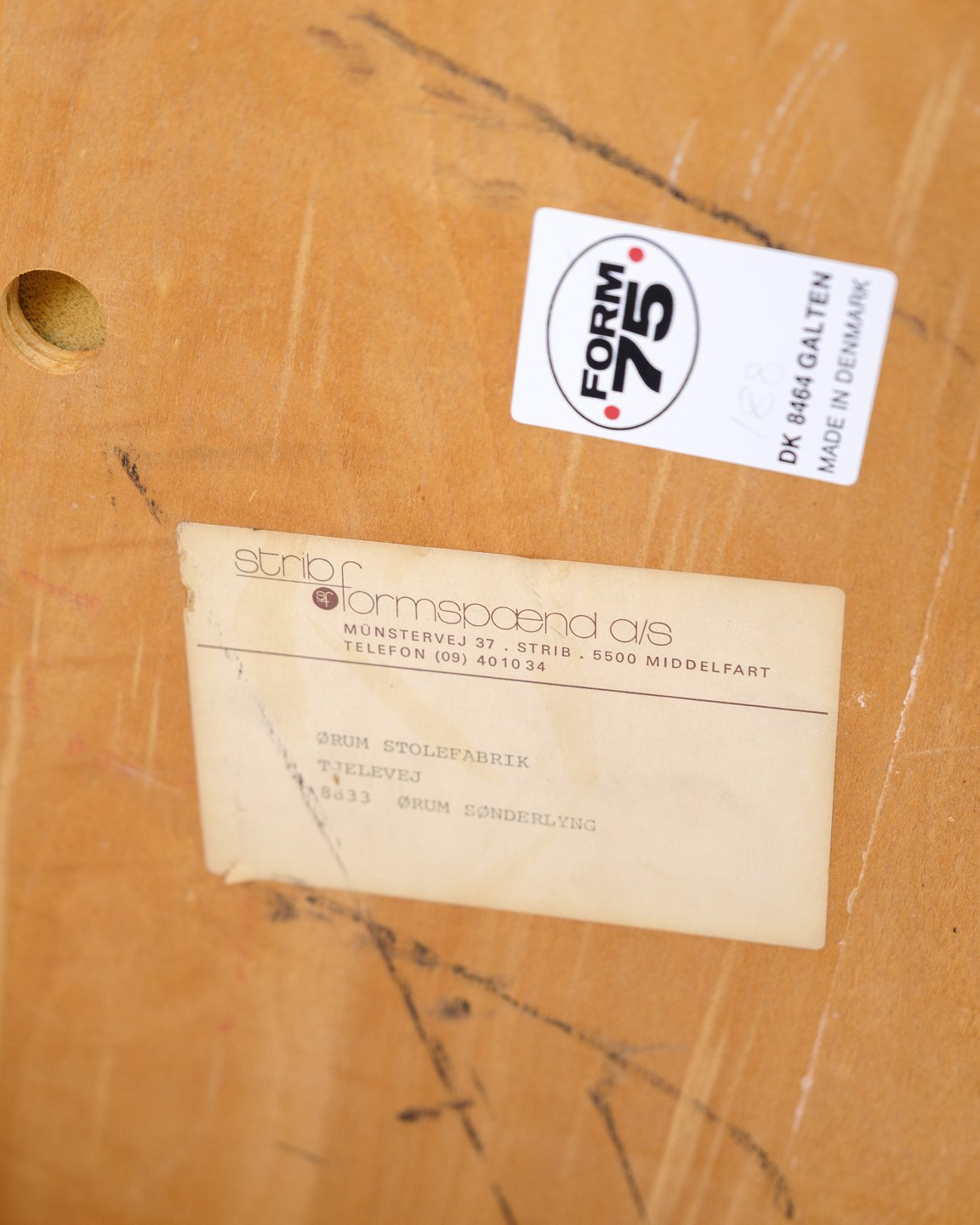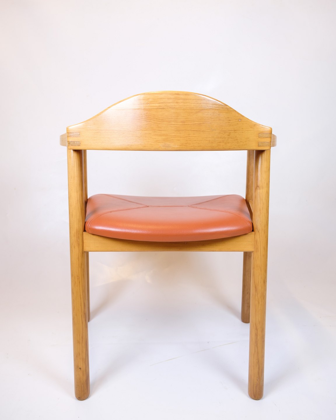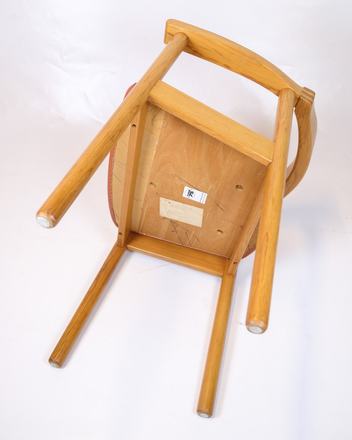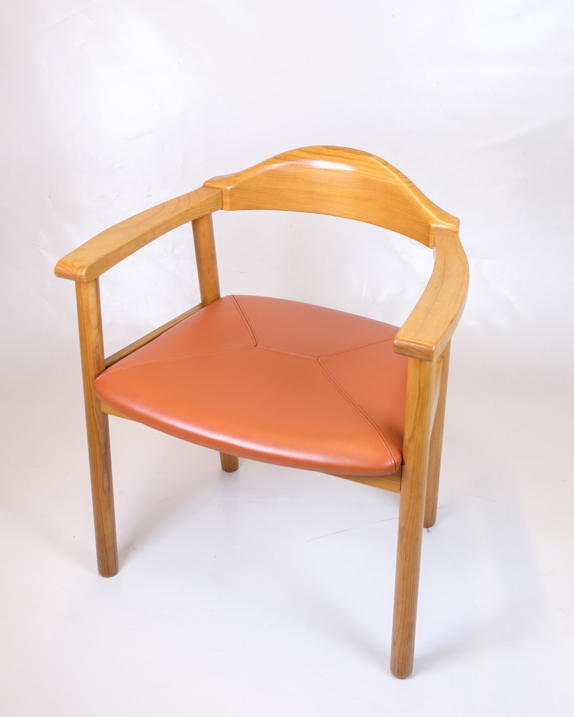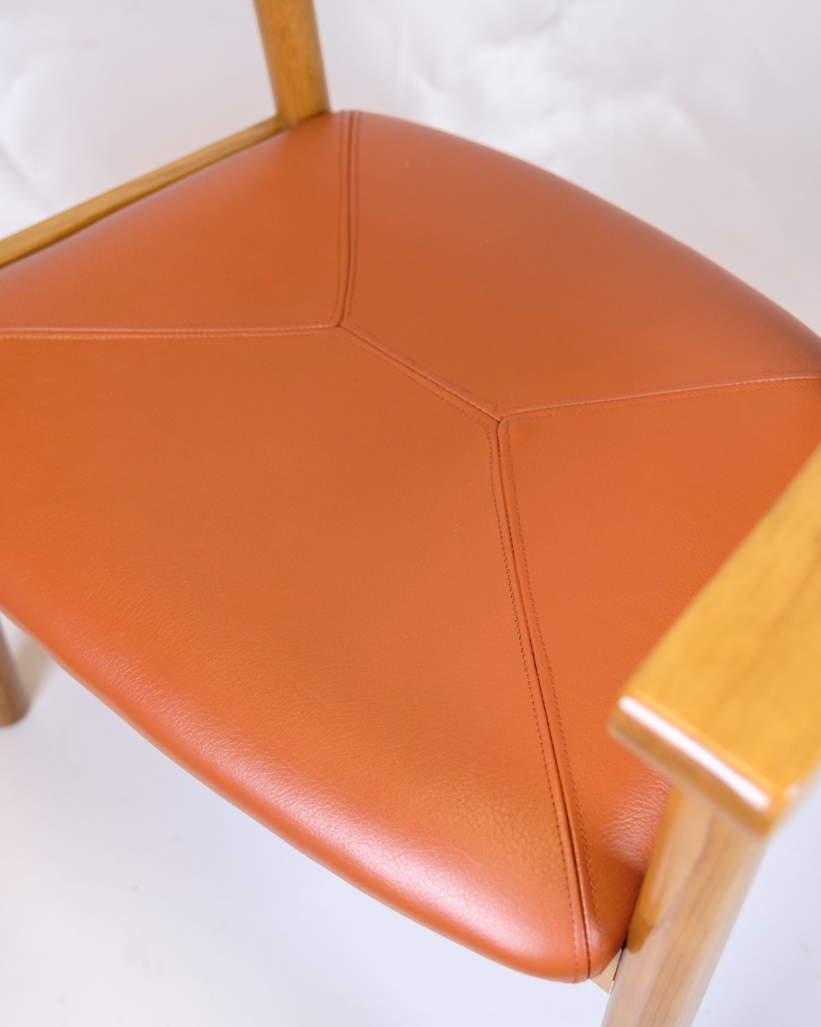 Armchair, model Form 75, designed by Andreas Hansen in the 1980s. The chair is made of solid wood with finger joints and an upholstered seat in cognac-colored leather, which gives it a warm and classic look.