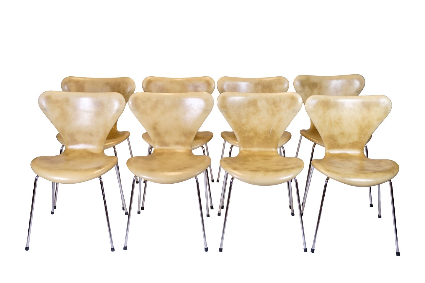 Set Of Eight Seven Chairs - Model 3107 - Seven Chair - Natural Leather - Arne Jacobsen - Fritz Hansen