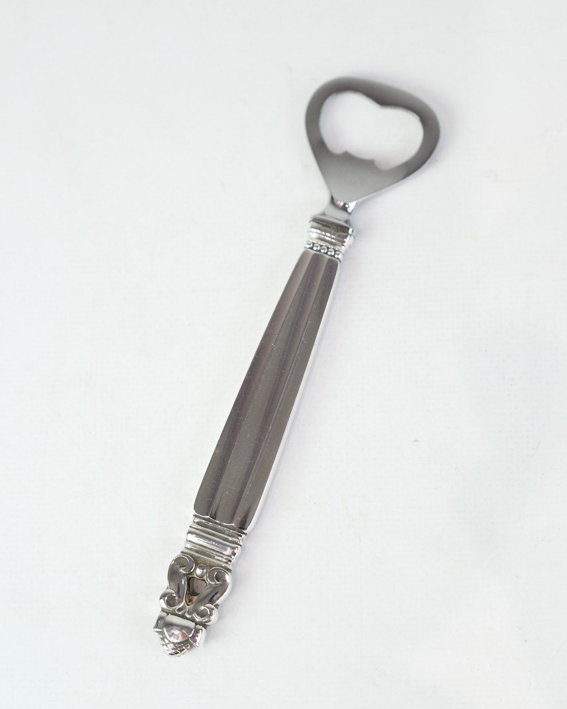 Please contact us for price informationGeorg Jensen bottle opener in King pattern. Sterling silver and stainless steel. Design by Johan Rohde. Length 16 cm.
