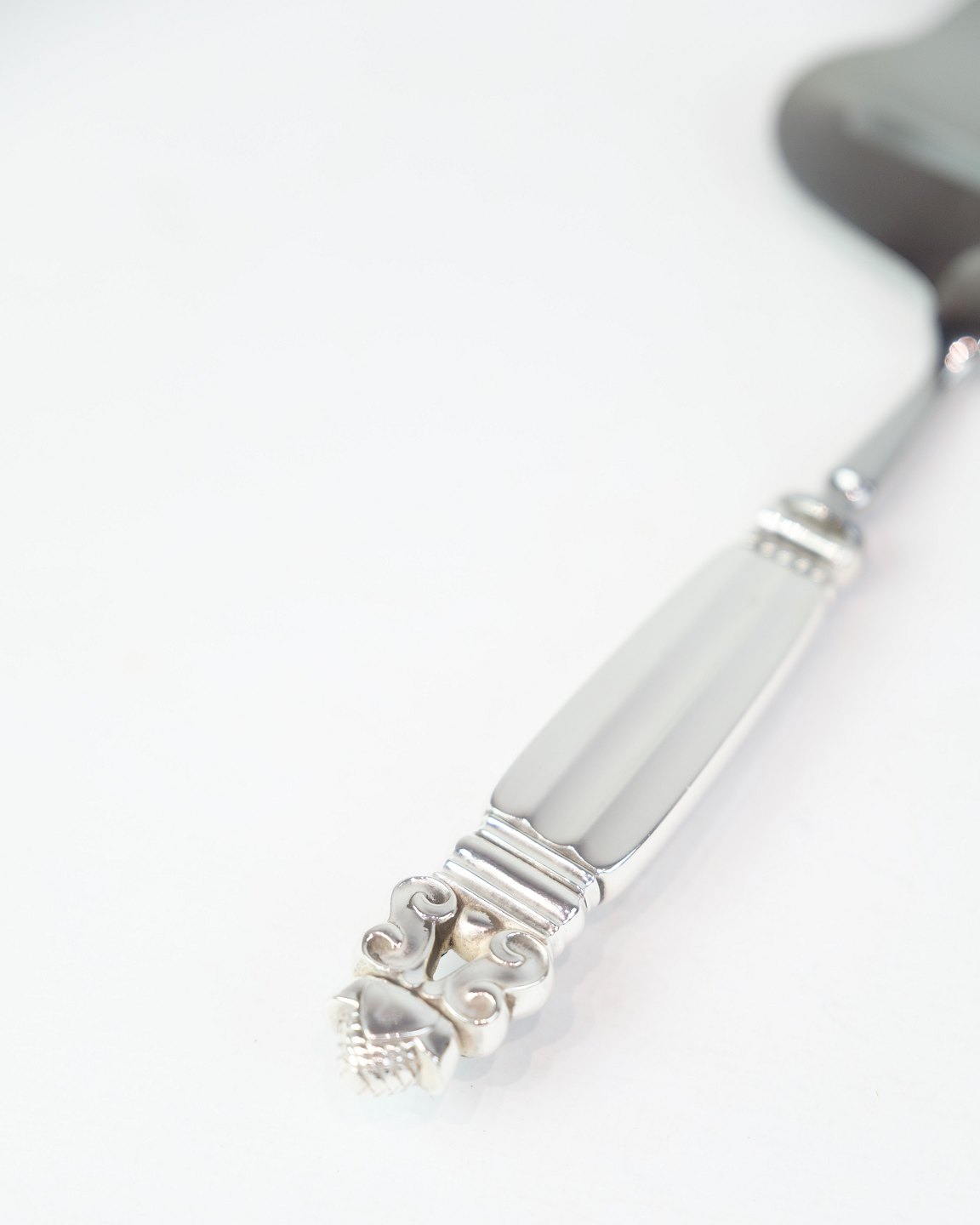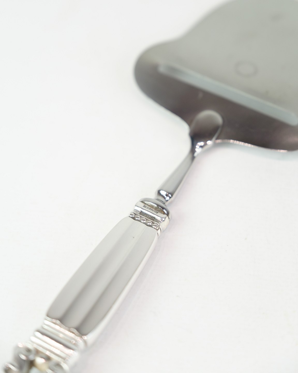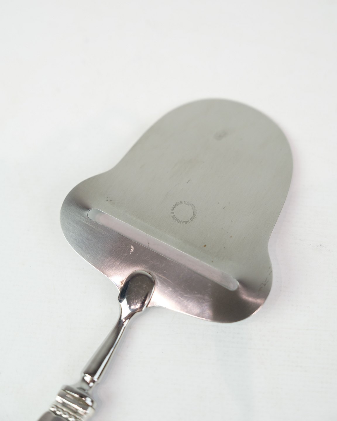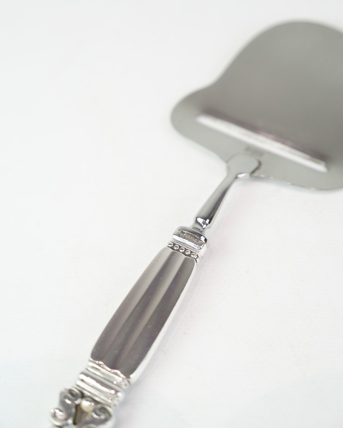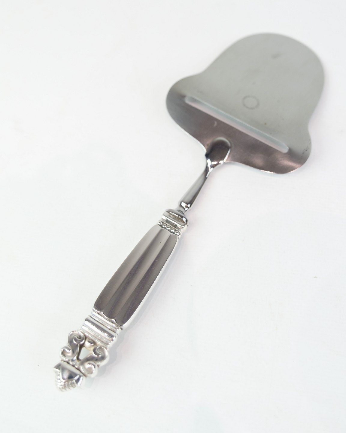 Georg Jensen cheese slicer in King pattern. Sterling silver and stainless steel, produced after 1945. Length 20.9 cm.