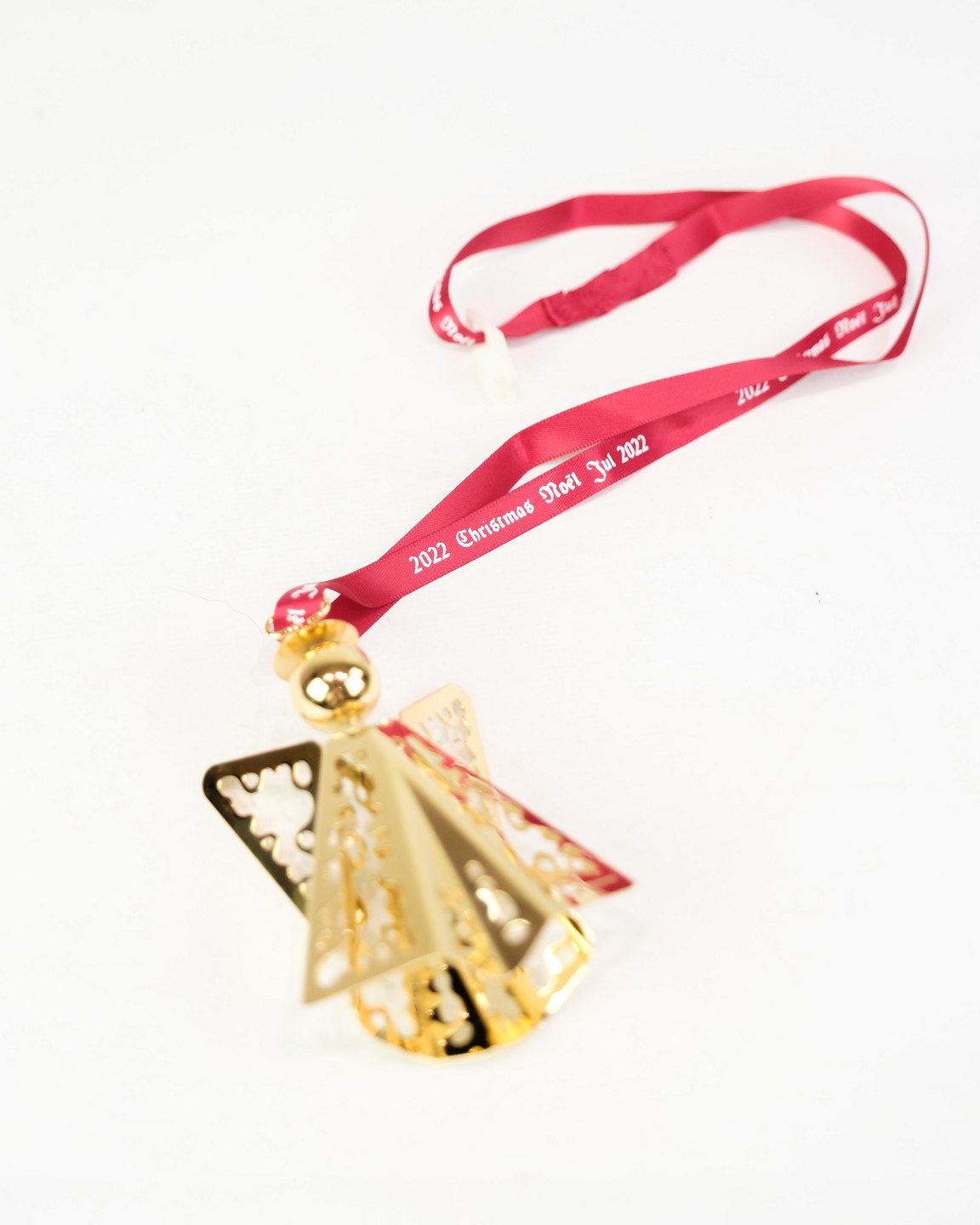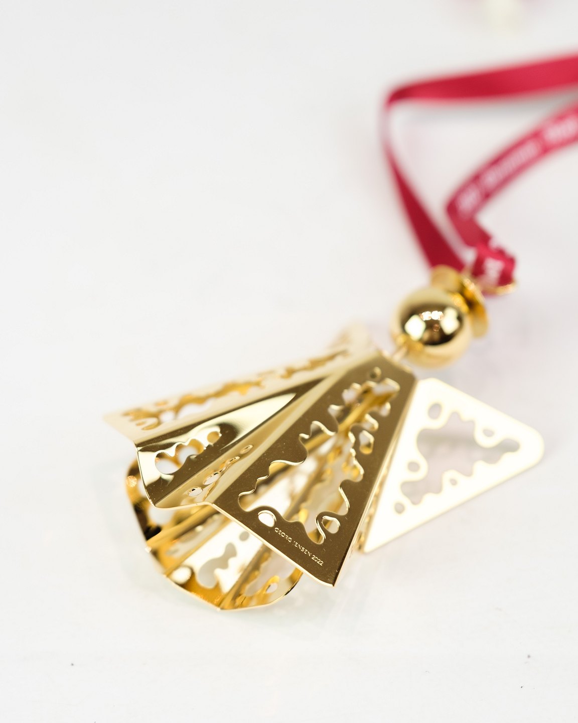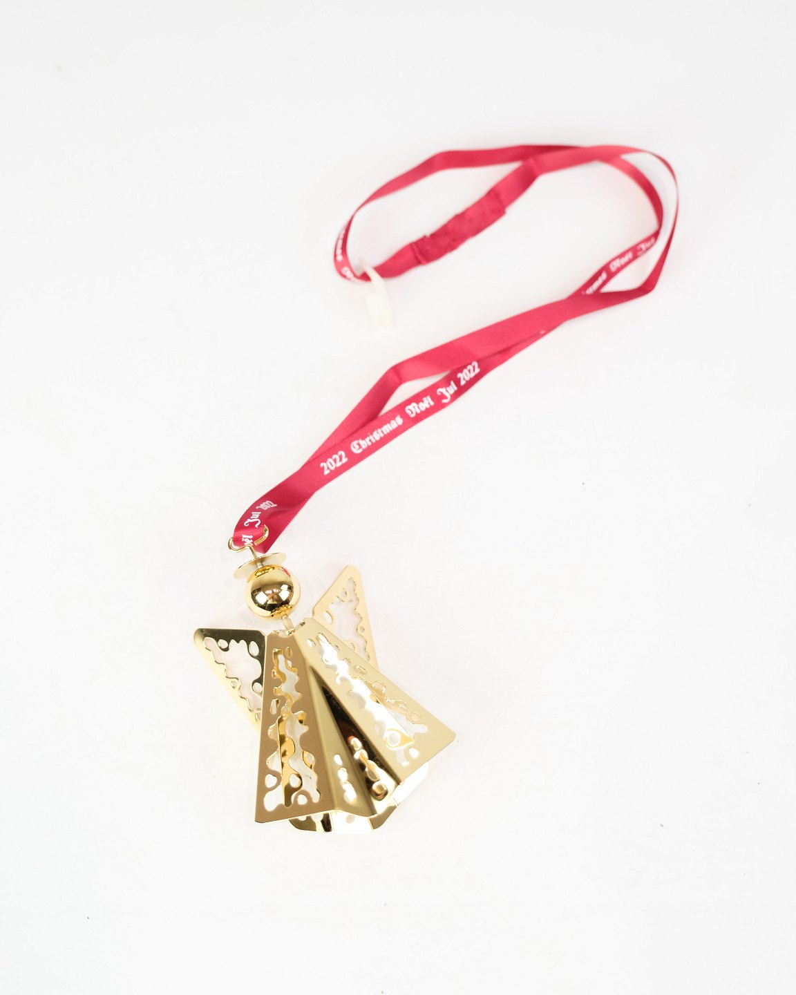 Georg Jensen Christmas euro from 2022, made as an angel with lace in gold-plated metal. The design continues the tradition of annual Christmas euro, which since the 1980s have been popular collectors' items worldwide.