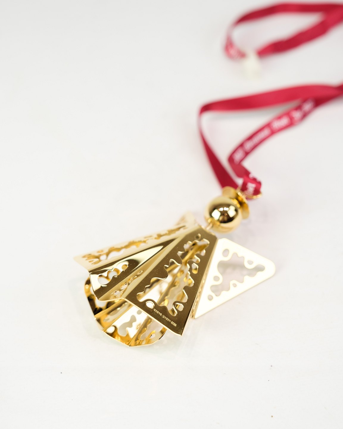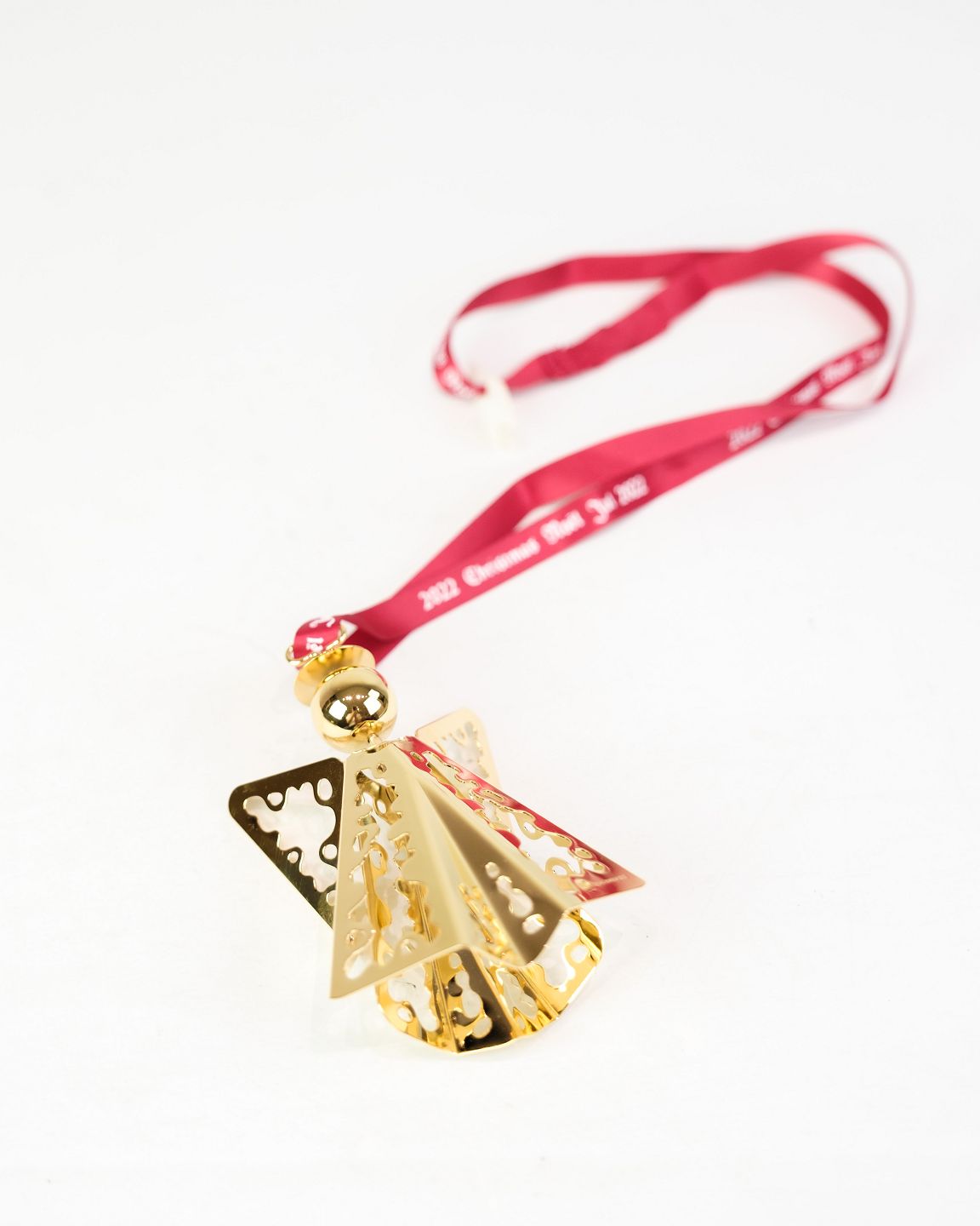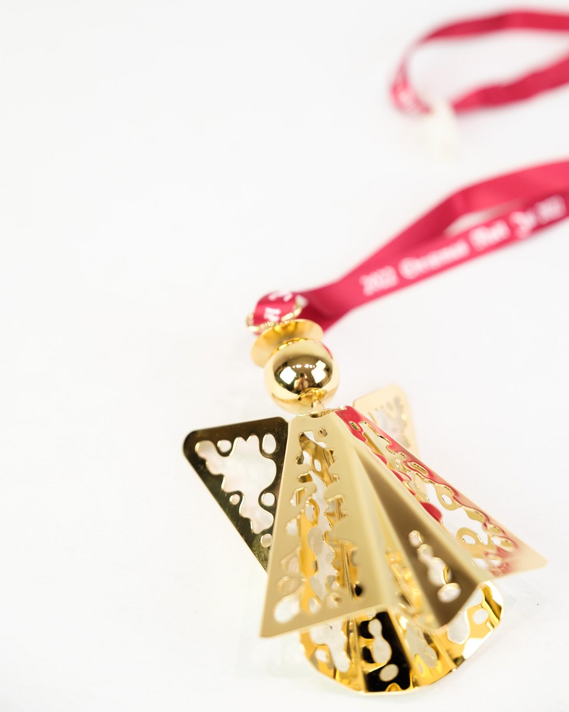 Georg Jensen Christmas euro from 2022, made as an angel with lace in gold-plated metal. The design continues the tradition of annual Christmas euro, which since the 1980s have been popular collectors' items worldwide.
