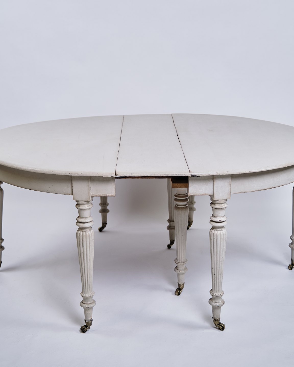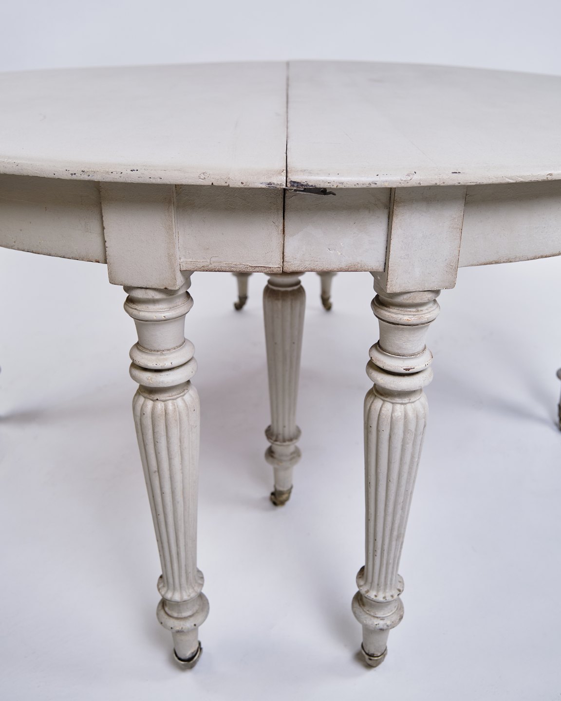 Round Dining Table - Gustavian Style - Gray Painted - Round Legs - Brass Wheels - 1780s