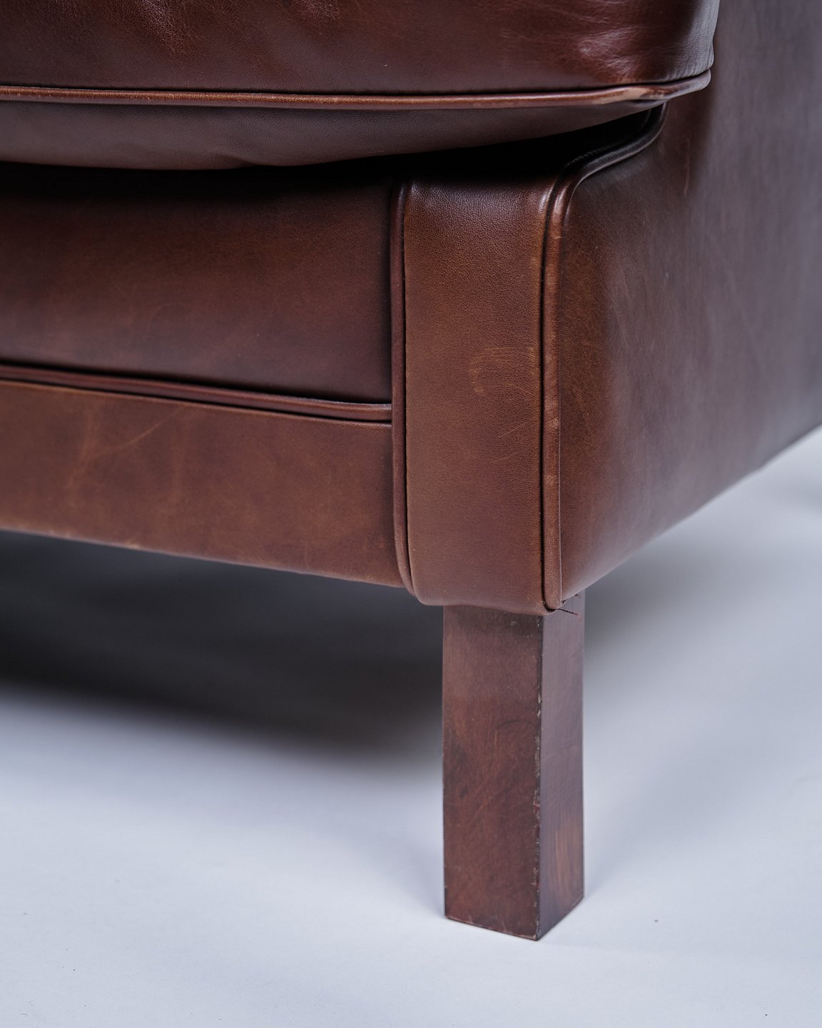 Danish 3-seater sofa in brown leather from the 1970s. Classic Danish design.