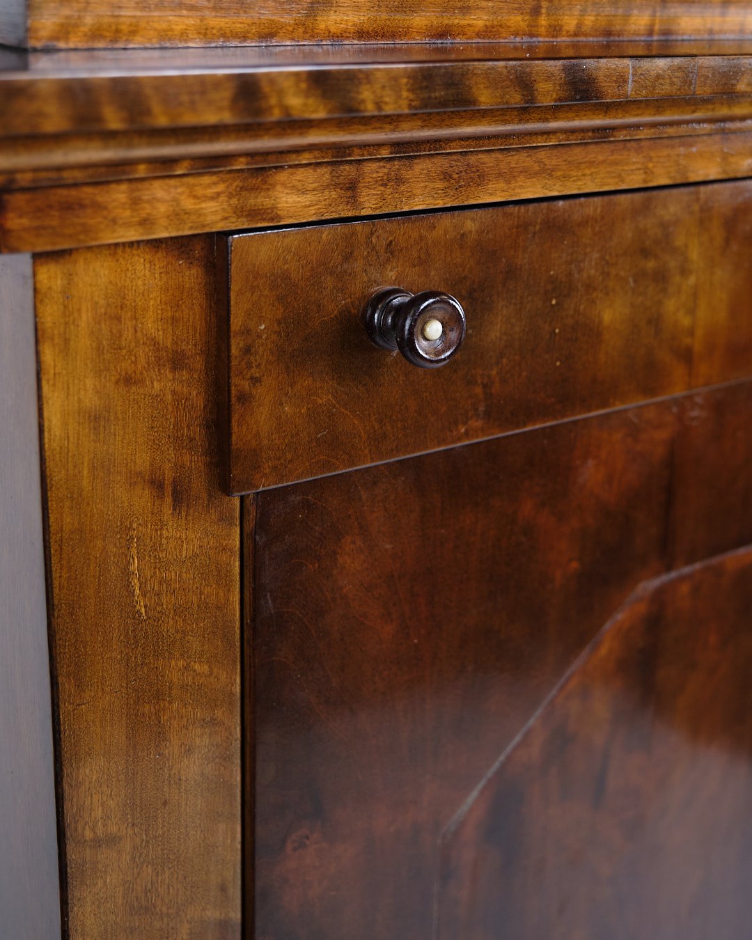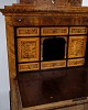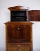 Antique secretary from the 1840s, made of hand-polished birch wood with beautiful intarsia details. The furniture is furnished with two drawers and appears as a fine example of the classic 19th century joinery, where functionality and decorative expression were united.