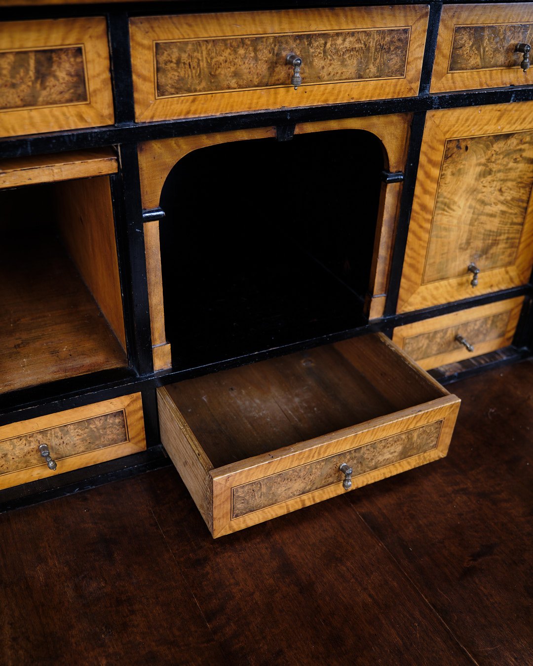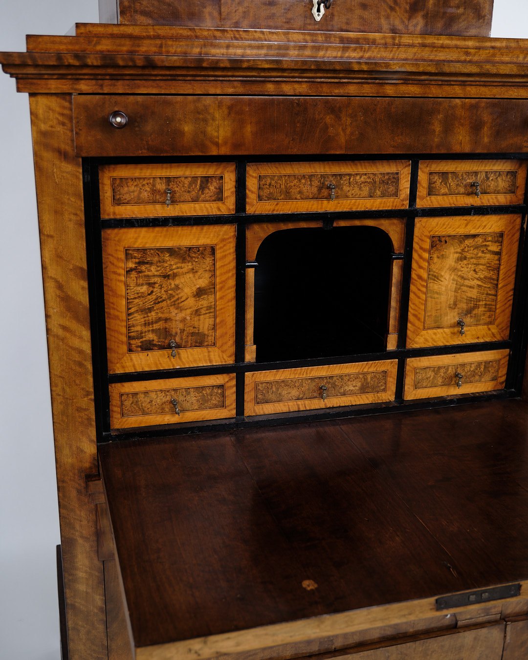 Secretary - Hand Polished Birch & Intarsia - 2 Drawers - 1840s
