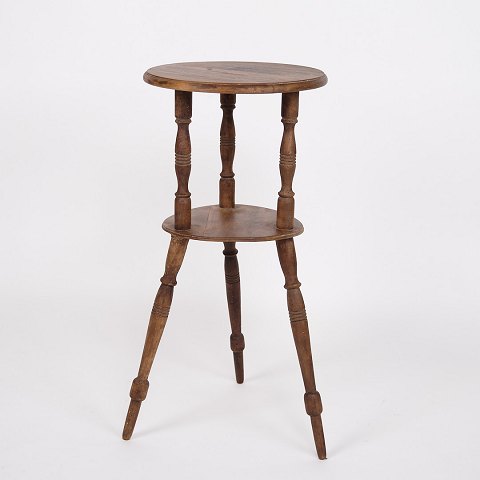 Antique pine side/flower table from the 1880s. Two-tier with turned legs.