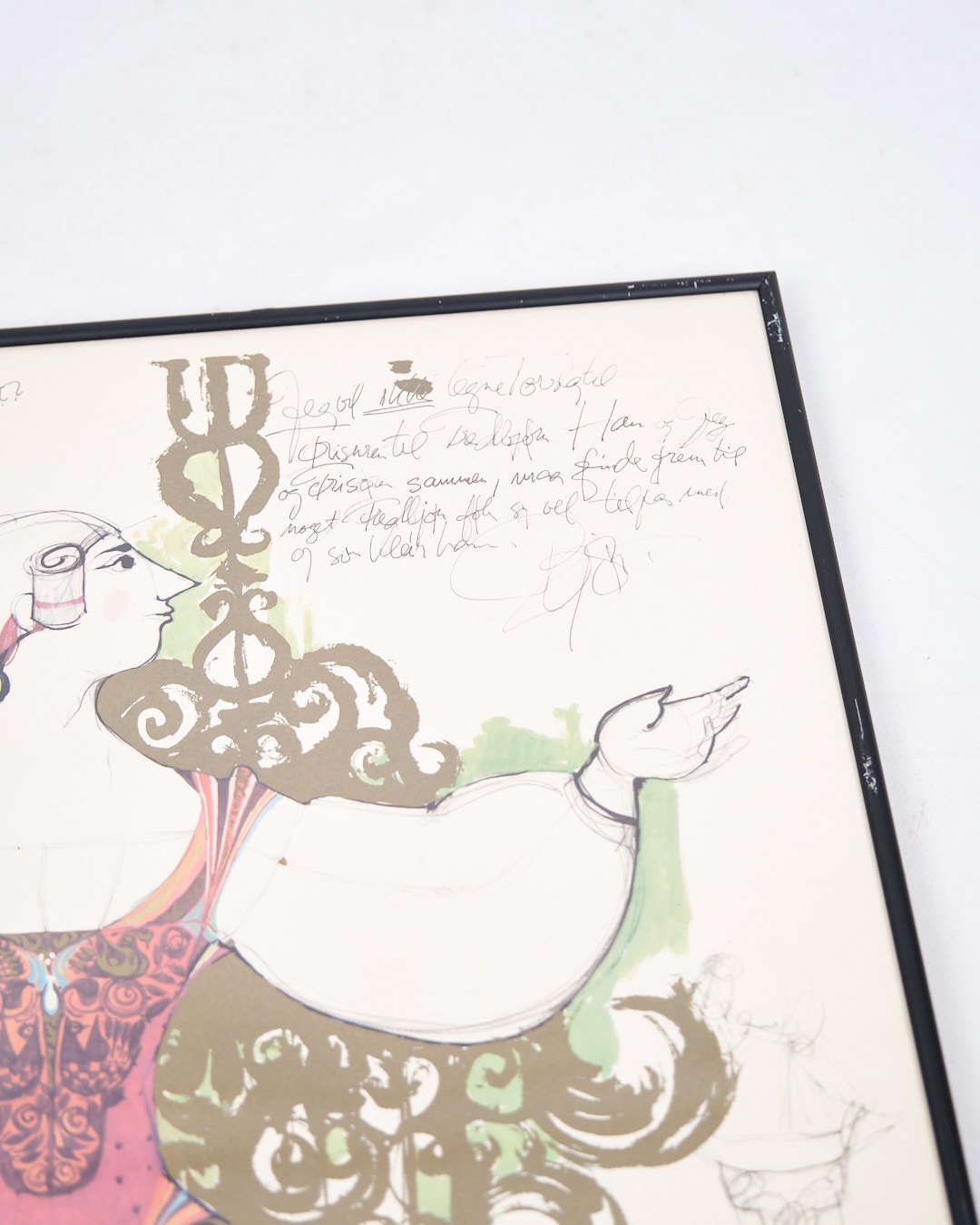 Lithographic print signed by Bjørn Wiinblad. Framed in a black frame with a characteristic decorative motif.