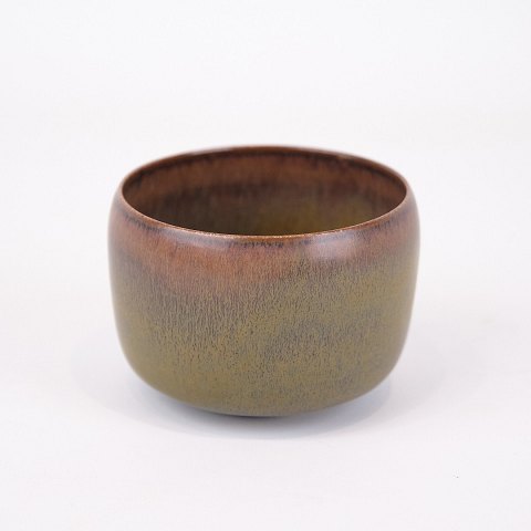 Saxbo bowl no. 25 by Eva Stæhr-Nielsen. Stoneware with brownish glaze. Danish design from the 1960s.