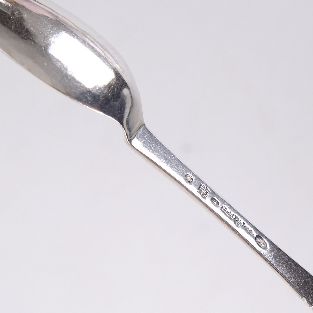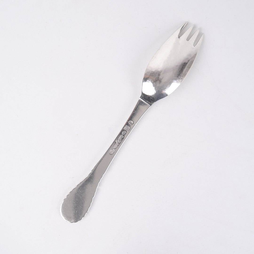 Please contact us for price informationFork spoon (spork) in pattern no. 13 by Evald Nielsen. Silver, stamped. Rare Danish silver design in classic style.