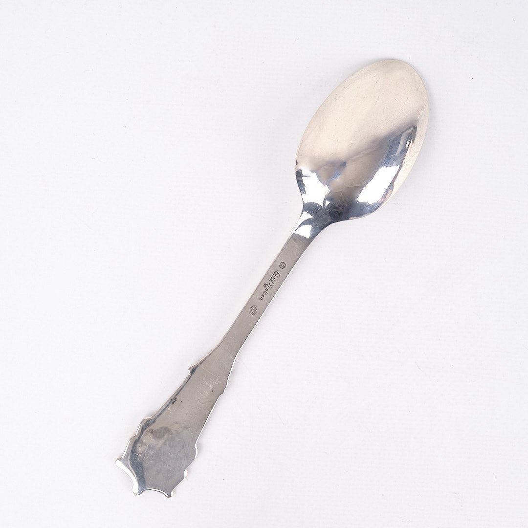 Lunch/Dessert spoon in King pattern by Evald Nielsen. Silver 830s, hallmarked. Classic Danish silver design.