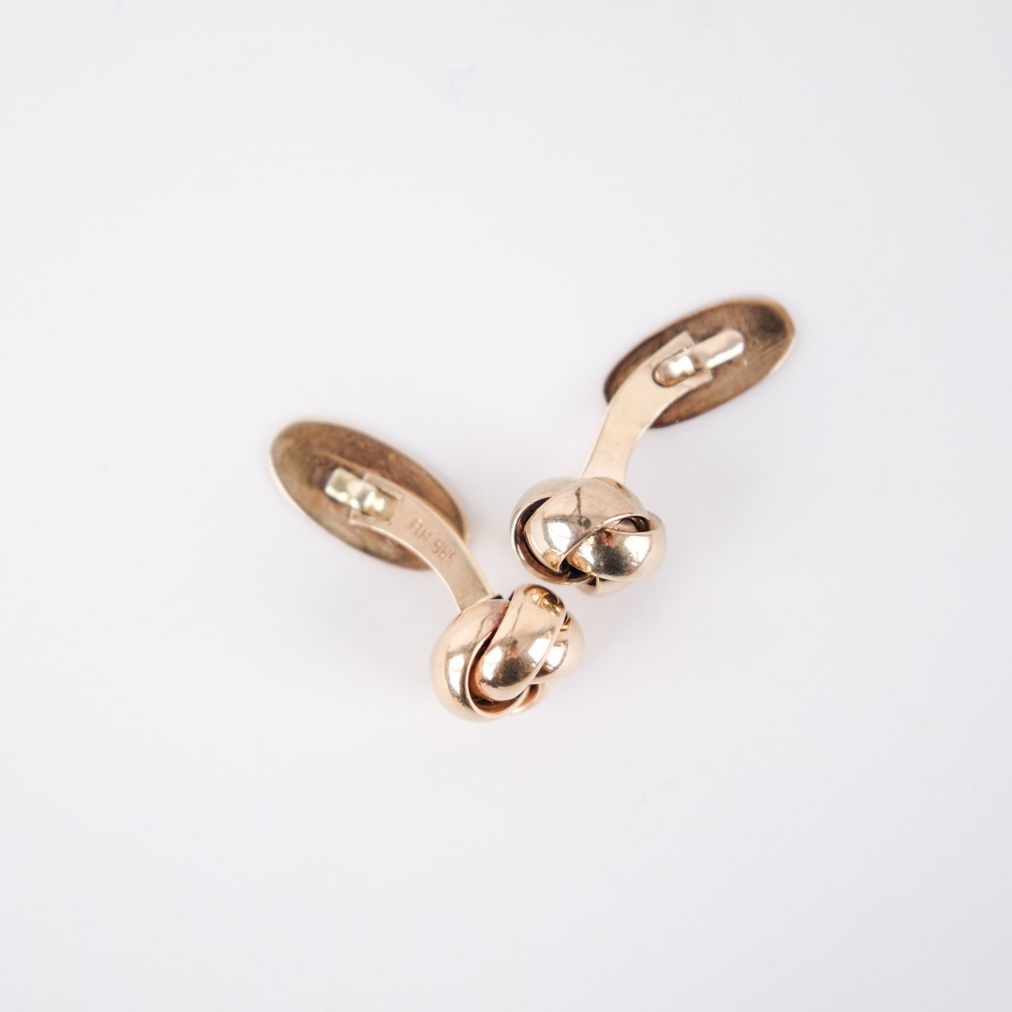 A pair of cufflinks in 14-carat gold featuring a classic knot motif, crafted by Bernhard Hertz, Copenhagen (1893–1937). Marked BH 585. An elegant and period-typical piece from a renowned Danish maker.