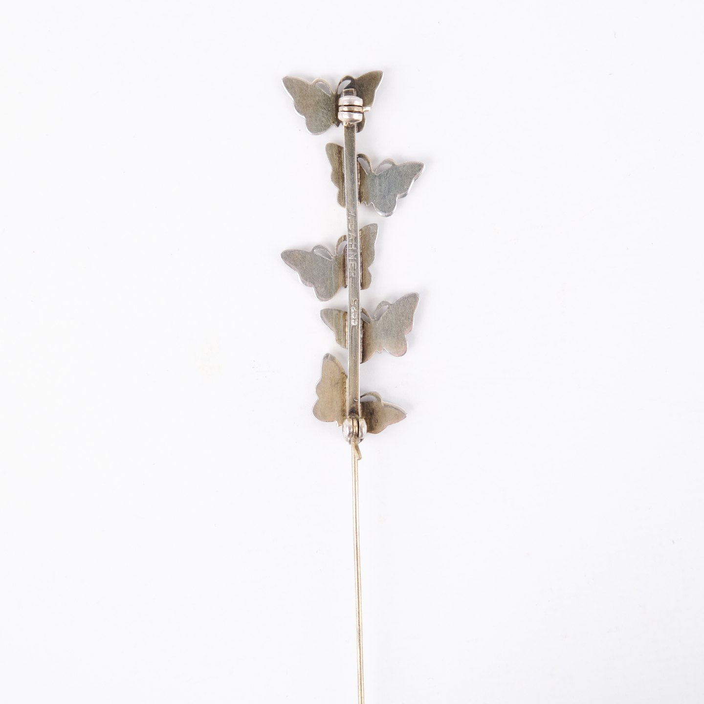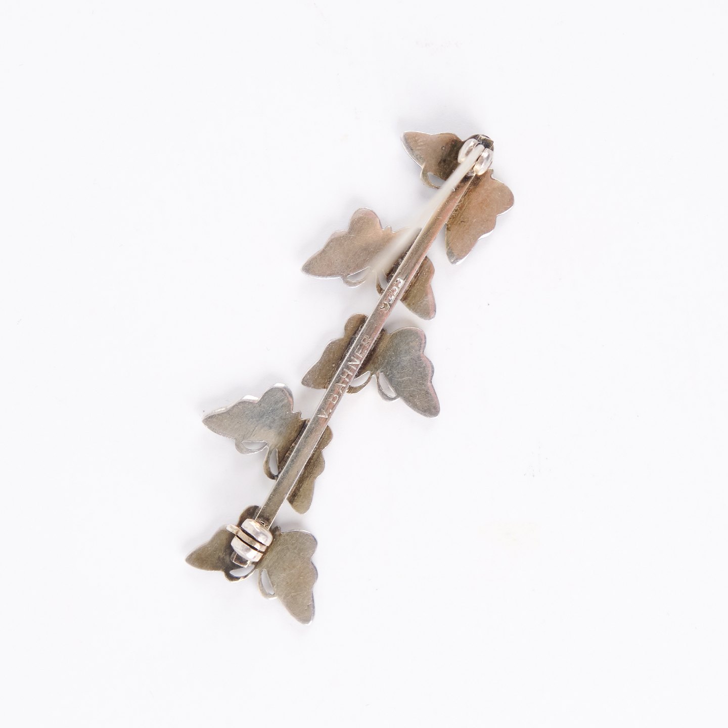 Brooch featuring blue enamel butterfly motifs, stamped 925 S and crafted by Volmer Bahner & Co., Copenhagen (1962–1987). A characteristic piece of Danish jewellery with detailed enamel work and the distinctive style of a renowned maker. Enamel fully intact.