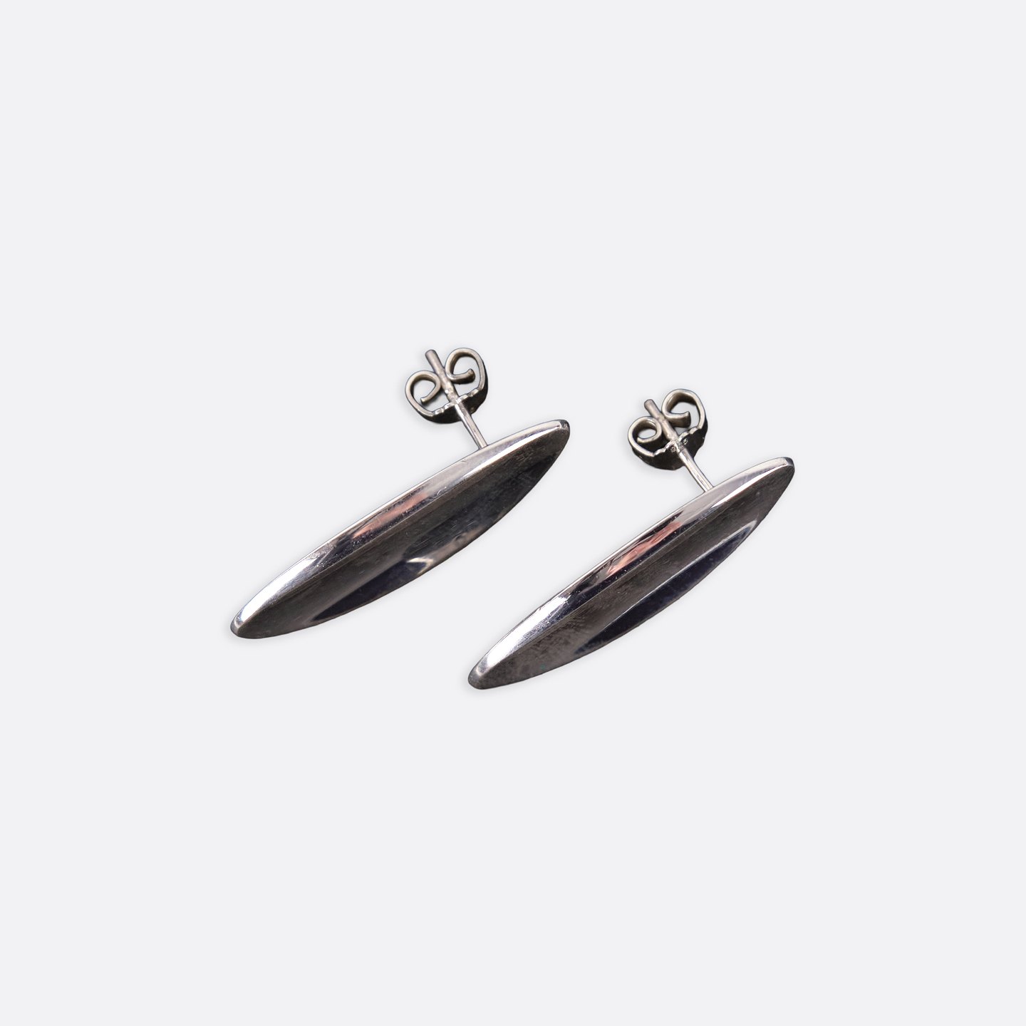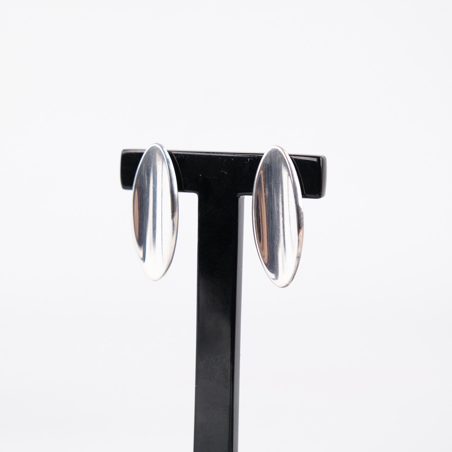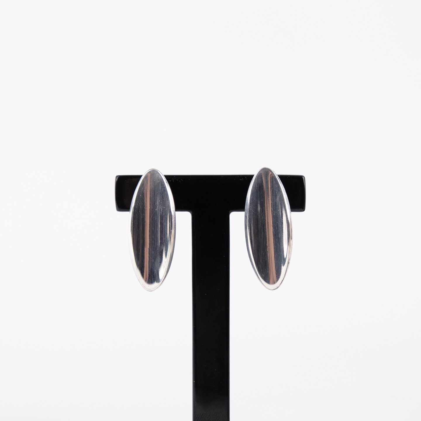 Ovale ørestikker i sterling sølv, model nr. 427, designet af Hans Hansen. Elegant, tidløst dansk smykkedesign med enkel organisk form, som kendetegner producentens moderne udtryk. Et klassisk sæt ørestikker i solid sølv.