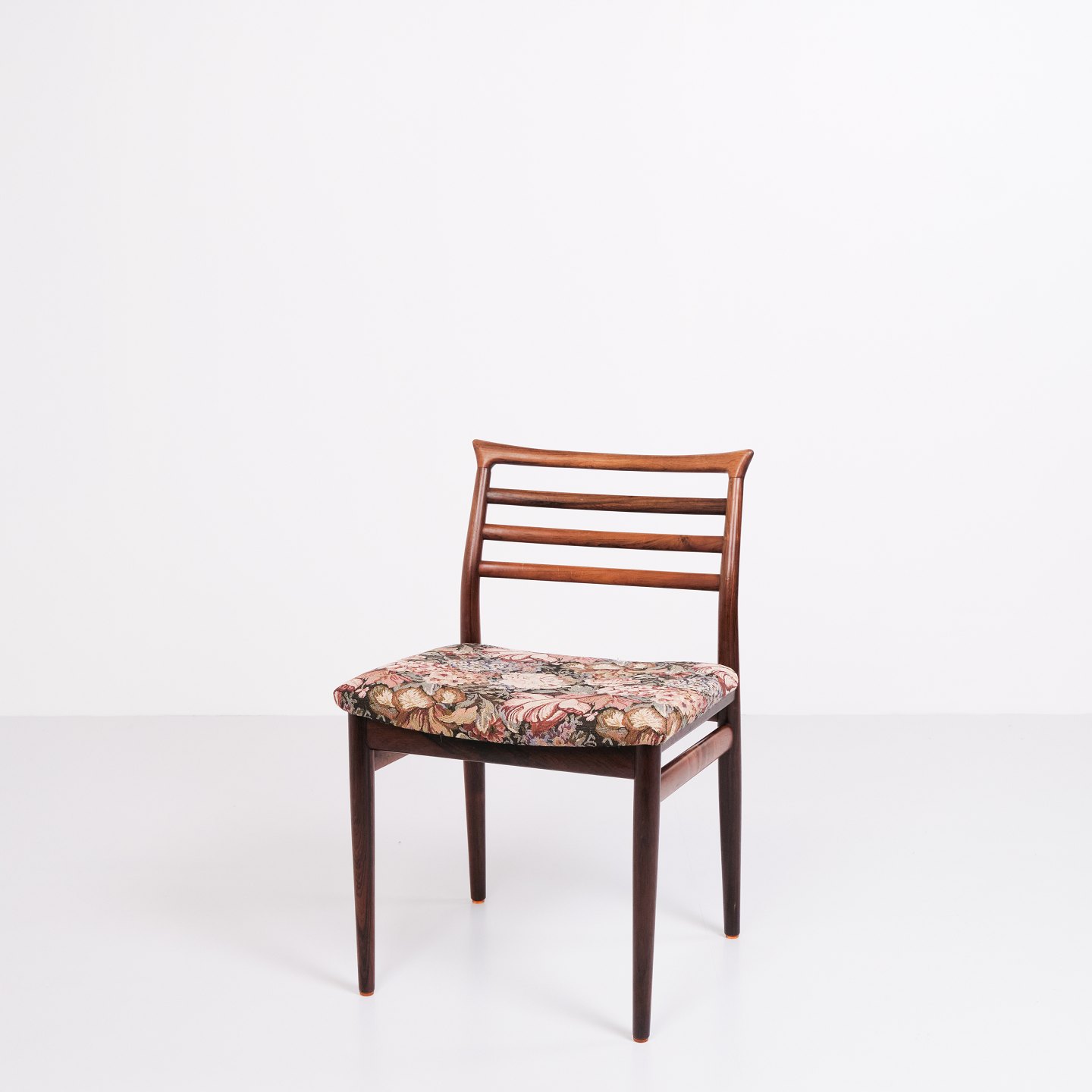 Set of Six Dining Chairs - Rosewood & Floral Seat - Erling Torvits - Sorø Furniture Factory - 1960s