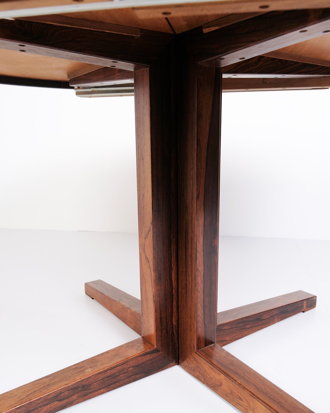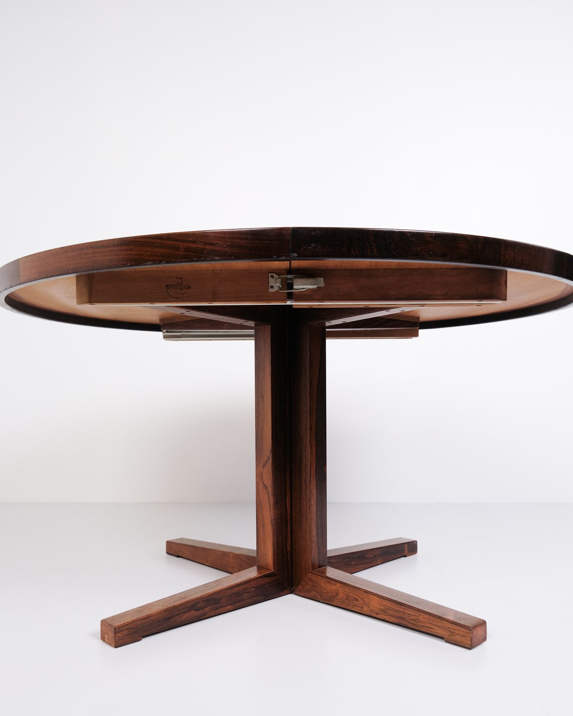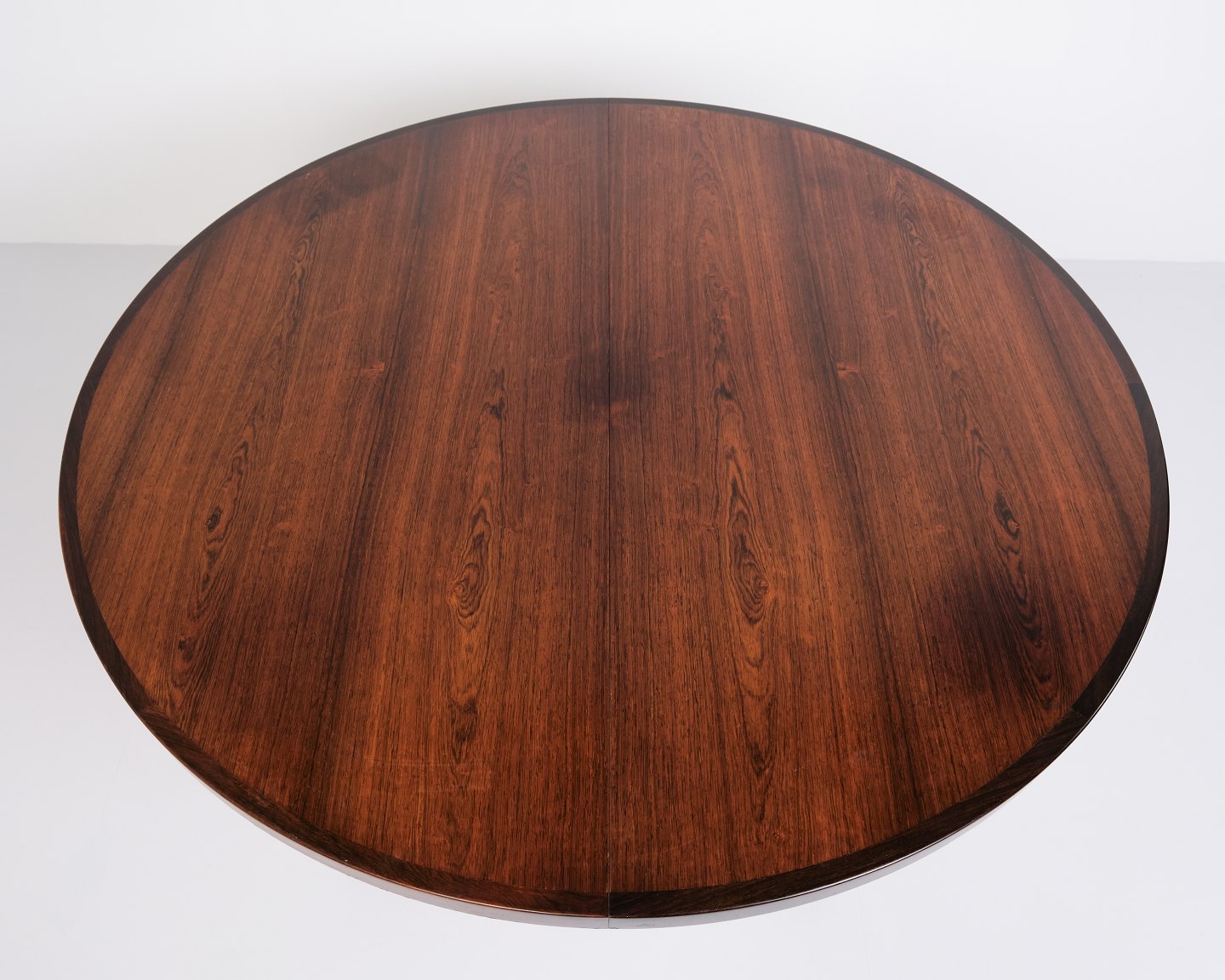 Round dining table in rosewood by C.J. Rosengaarden. Danish design from the 1960s. Extension with two leaves of 50 cm.