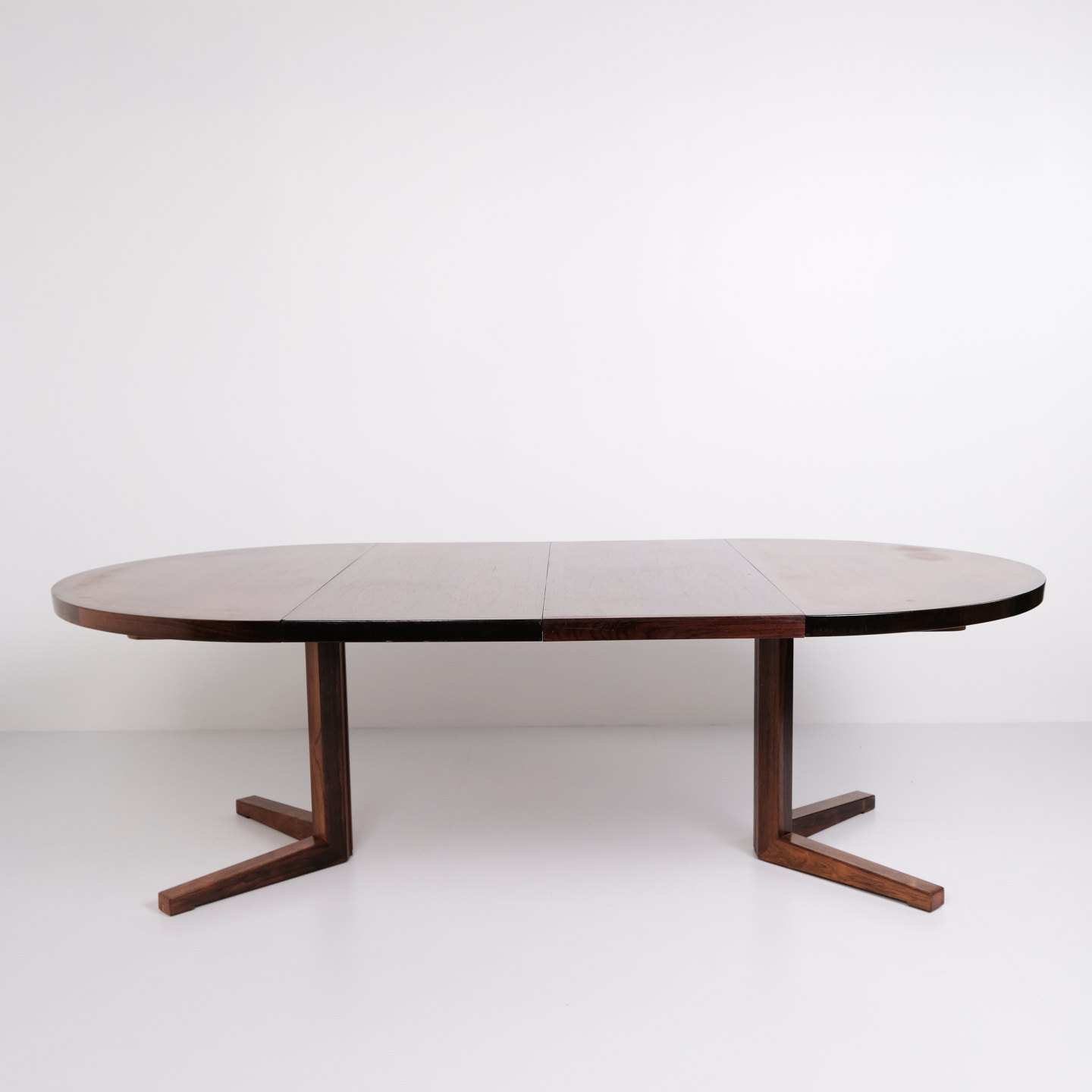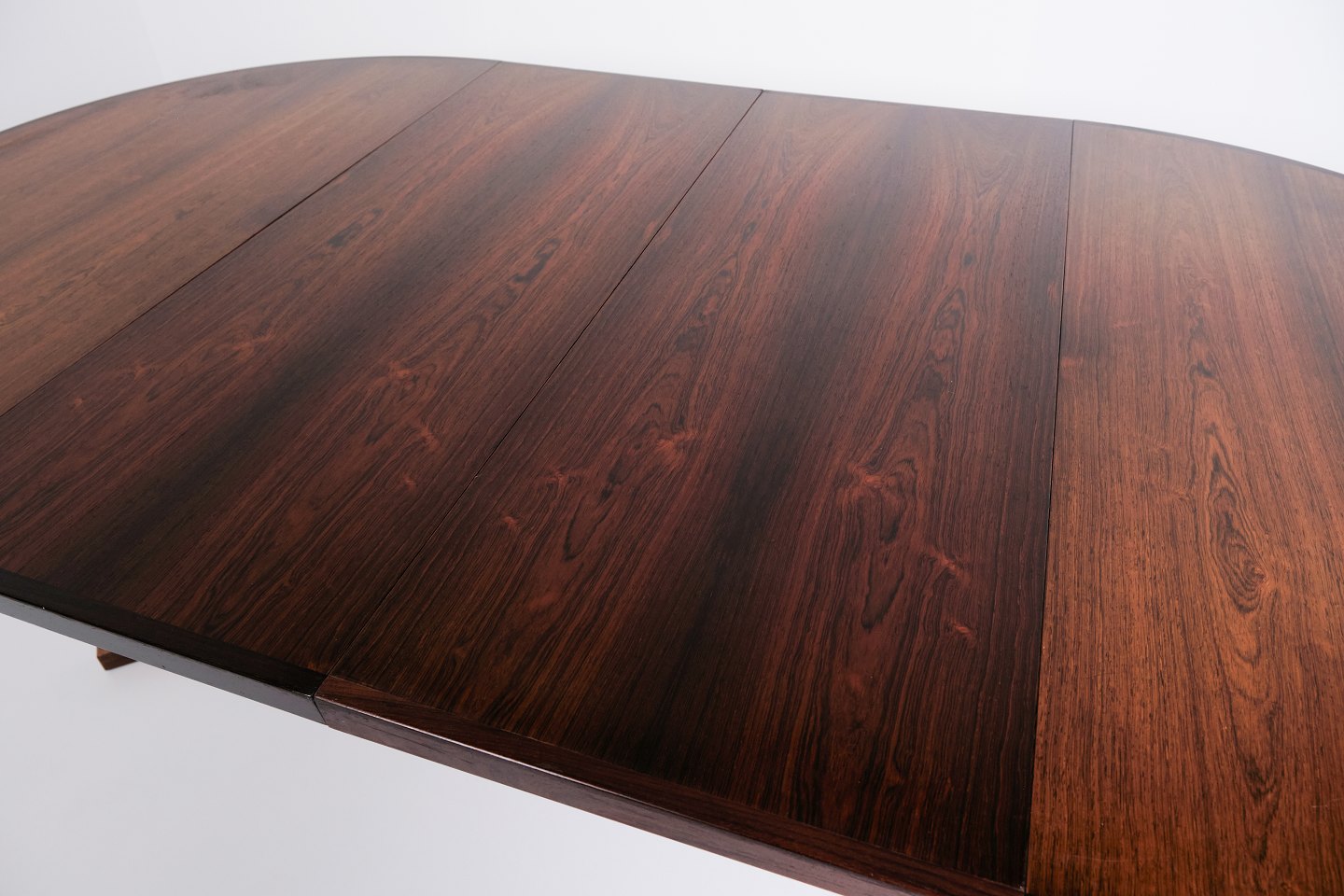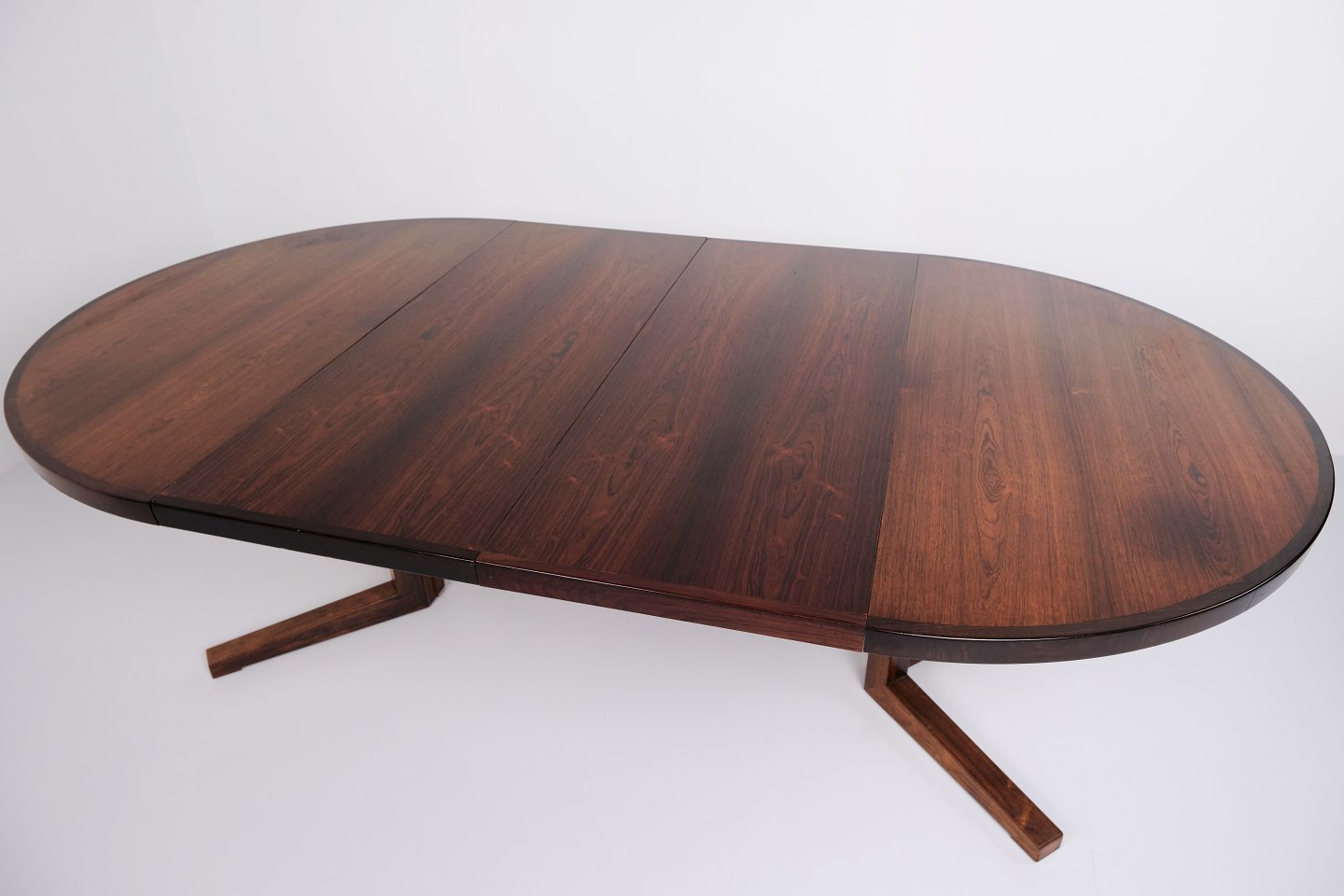 Round dining table in rosewood by C.J. Rosengaarden. Danish design from the 1960s. Extension with two leaves of 50 cm.