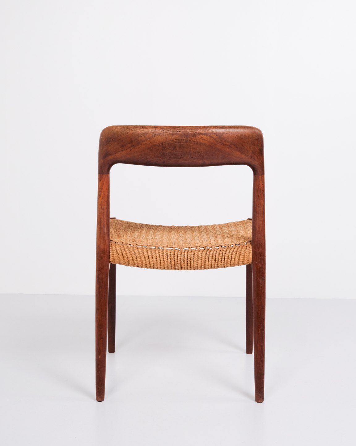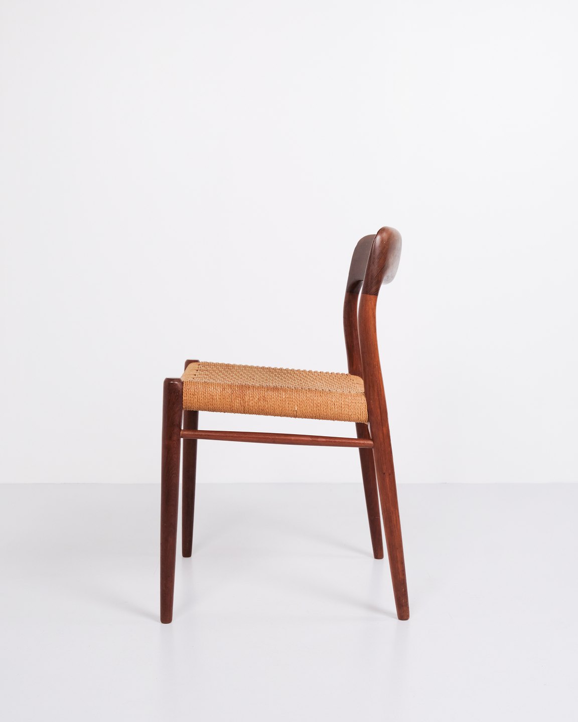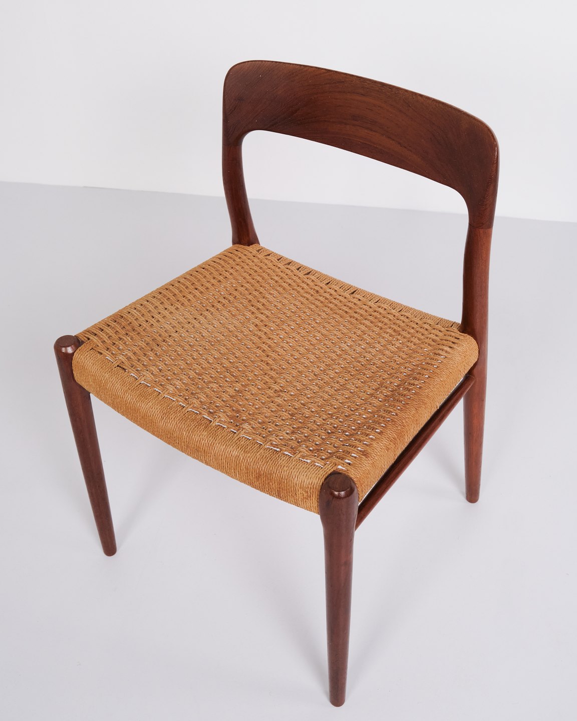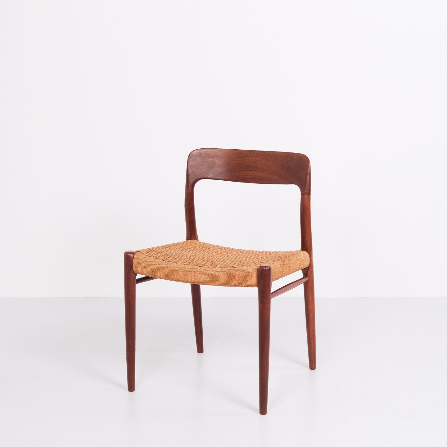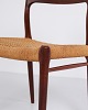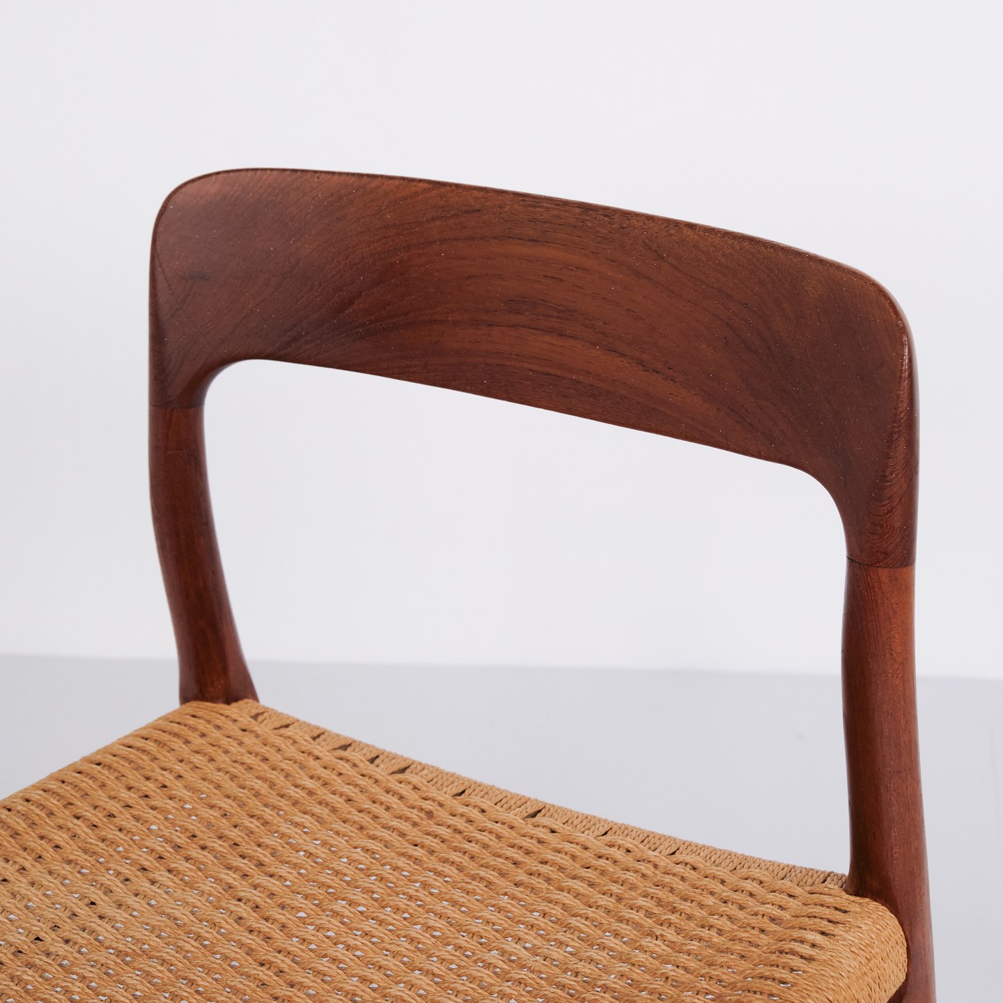 Set of five N.O. Møller dining chairs, model 75. Teak and paper wicker, 1960s.