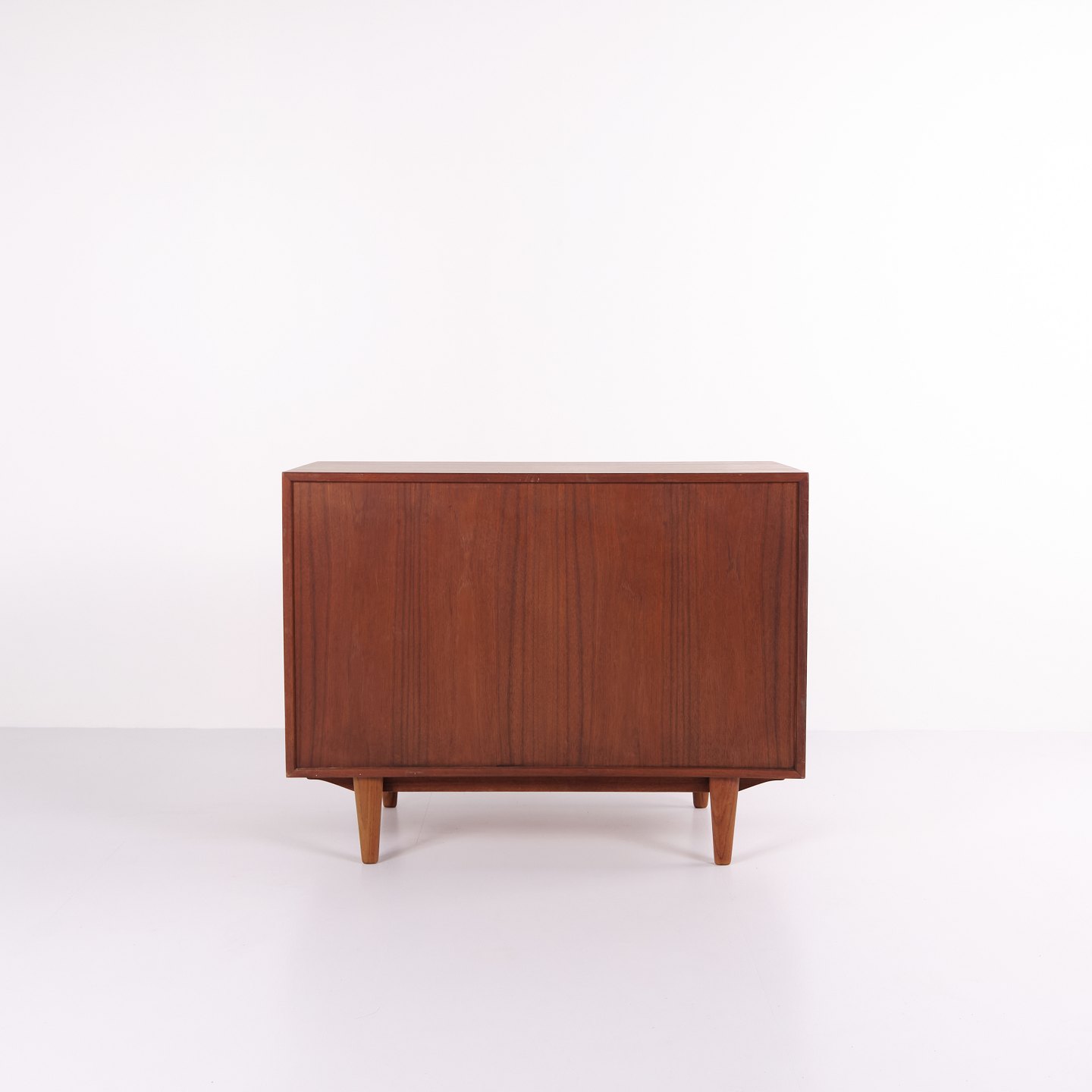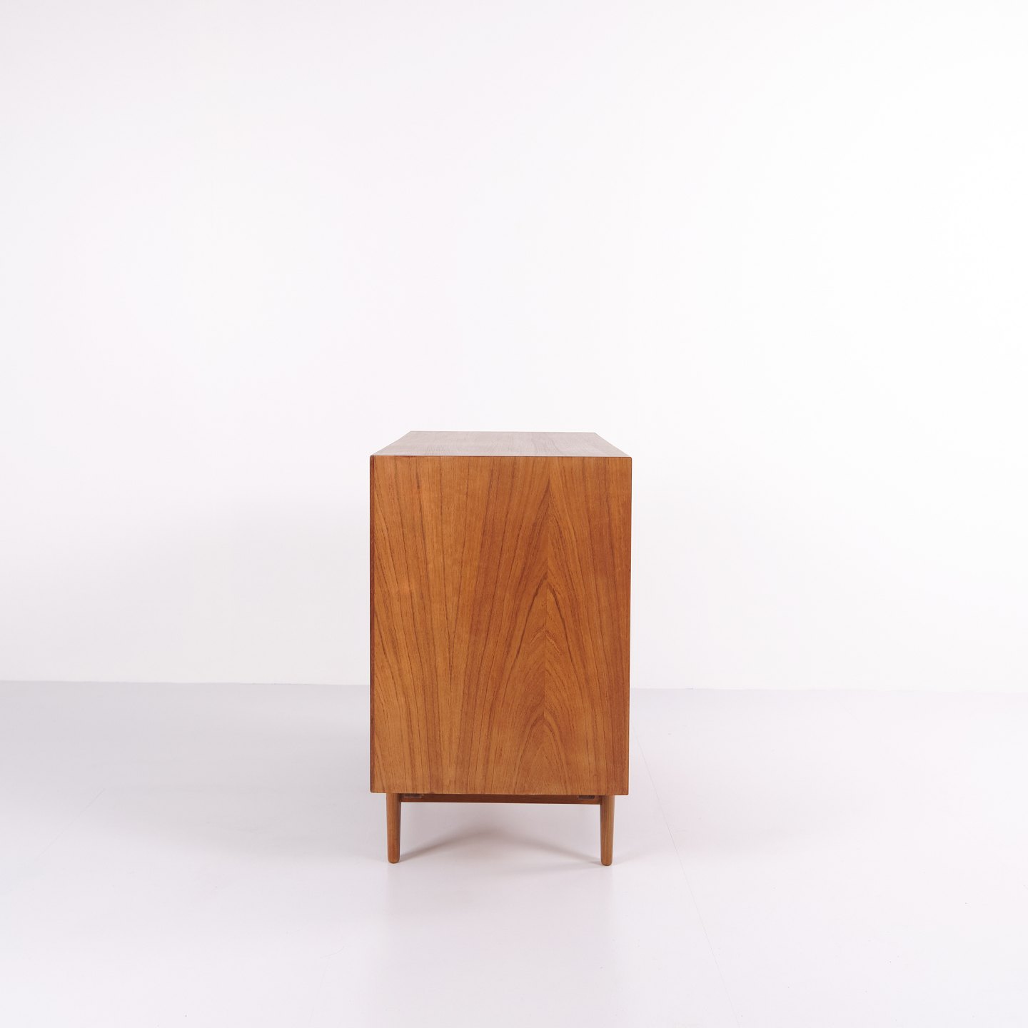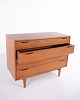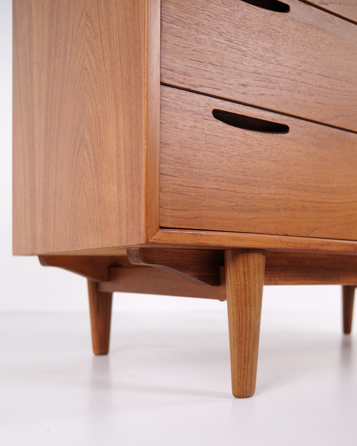 Chest of drawers designed by Ib Kofod-Larsen and manufactured by Brande Møbelfabrik in the 1950s. The chest of drawers is made of teak with four spacious drawers and characteristic, simple handles, which emphasize Kofod-Larsen's clean and functional design language.