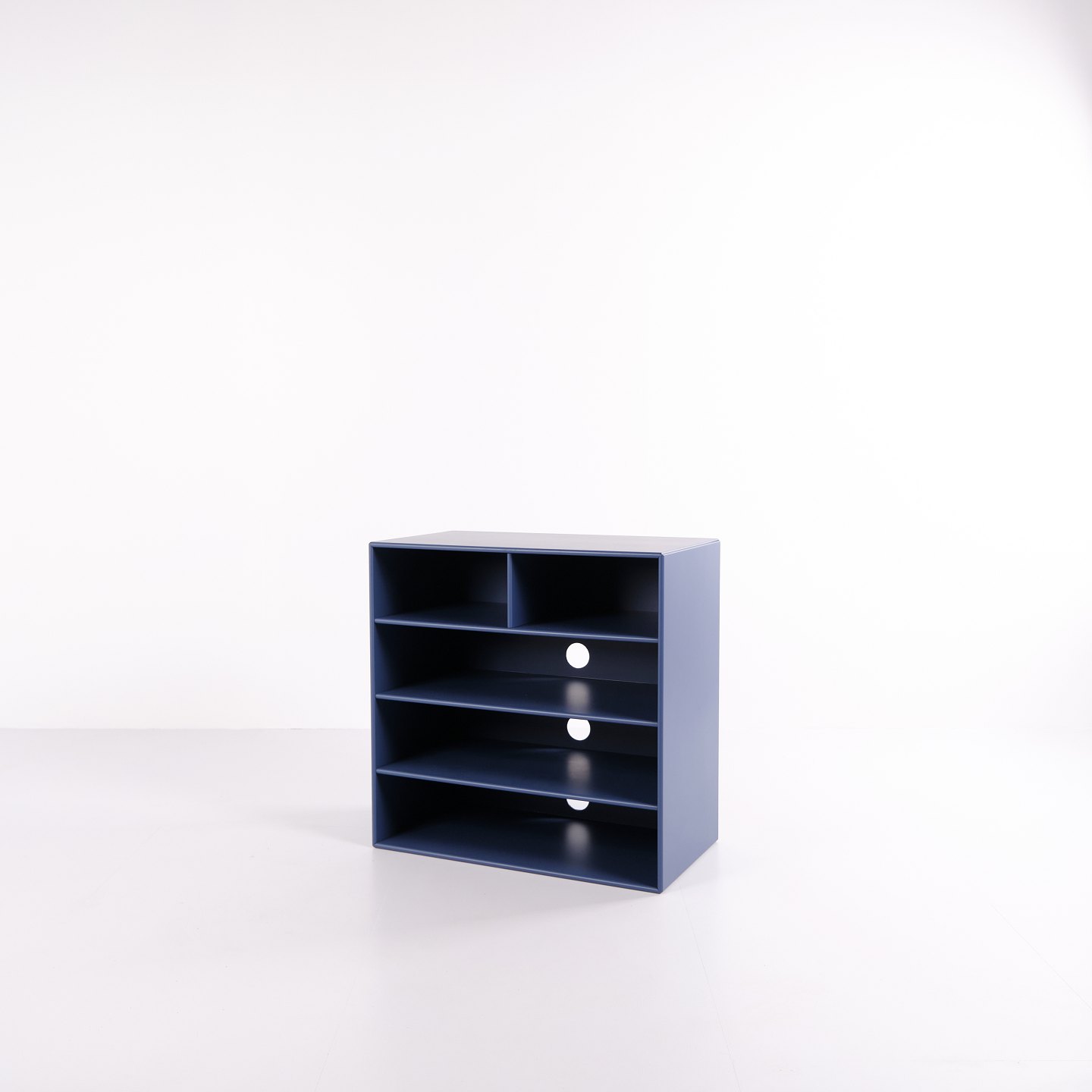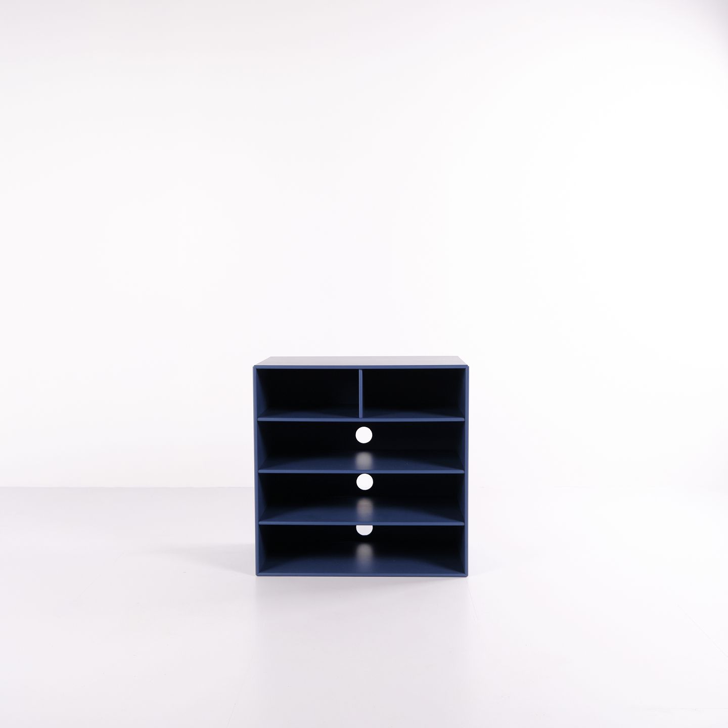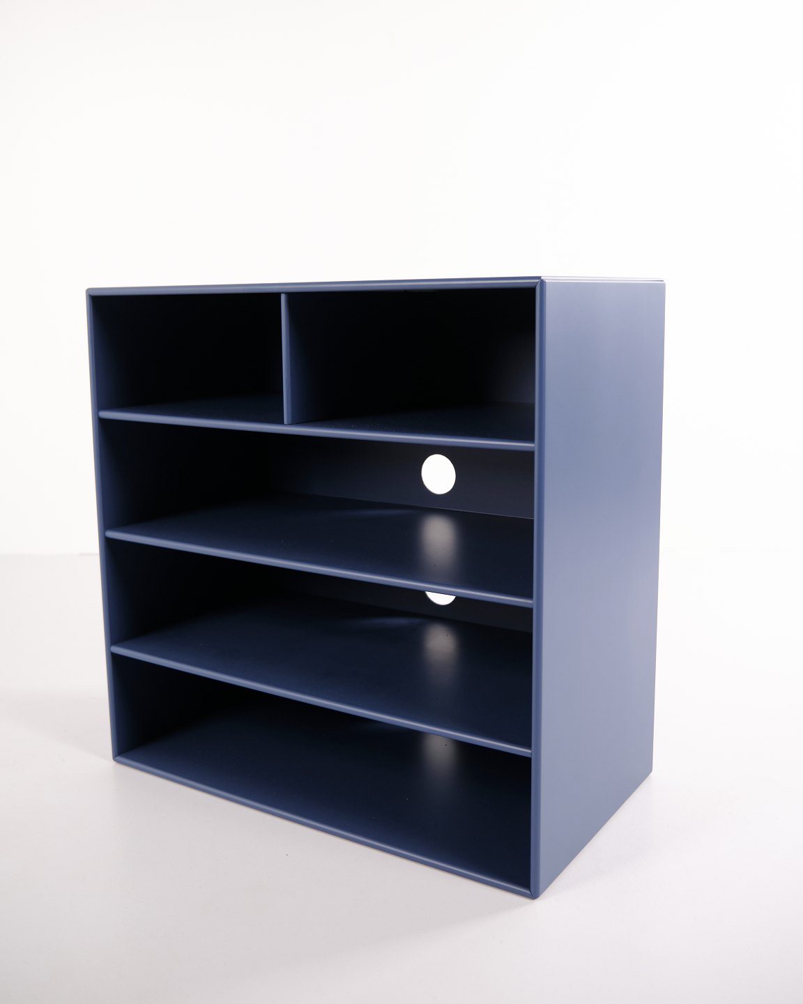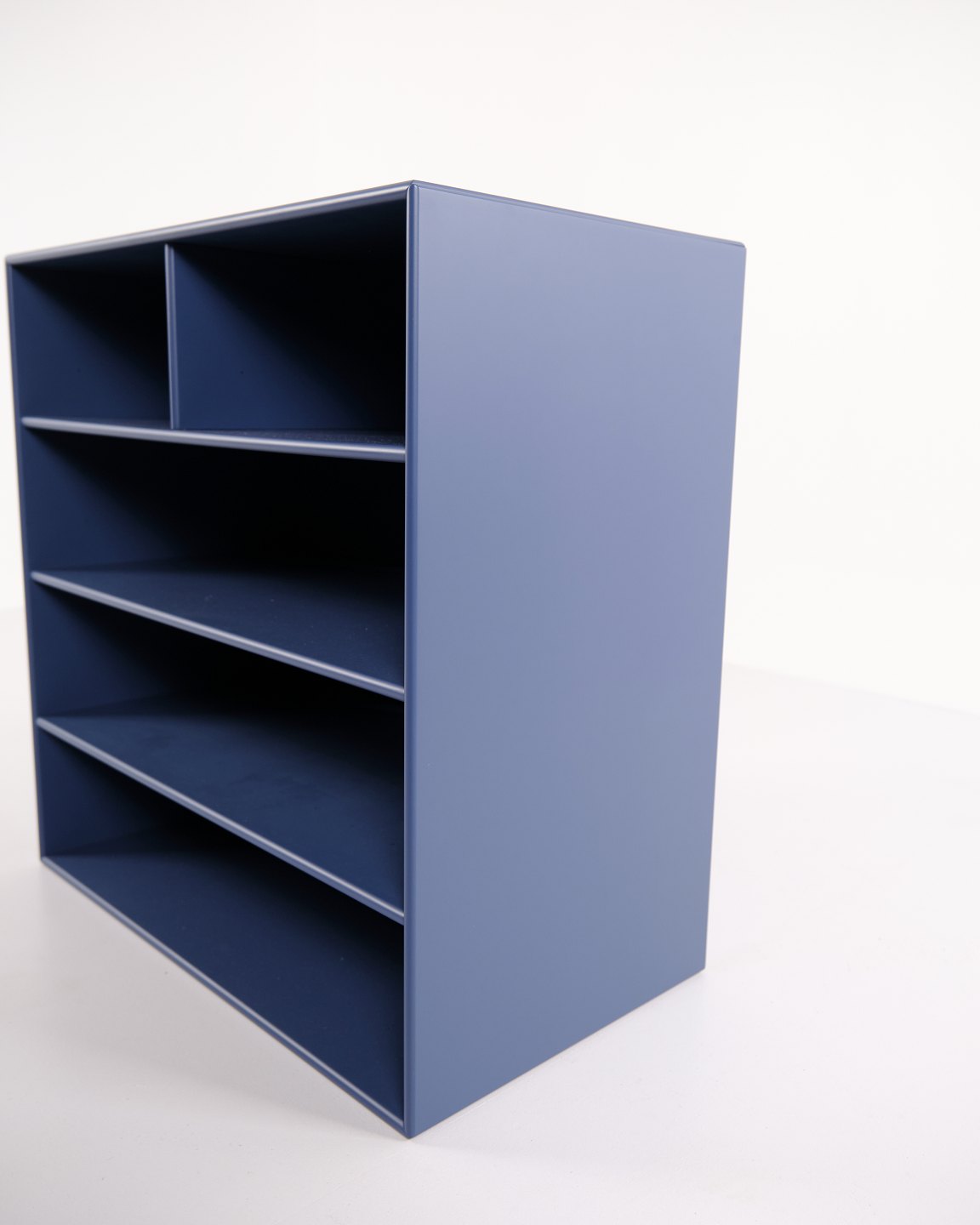 Montana bookcase in blue. Equipped with four open shelves, suitable for storage or display in the living room, office or hallway. A classic Montana module with a simple structure and high functionality.