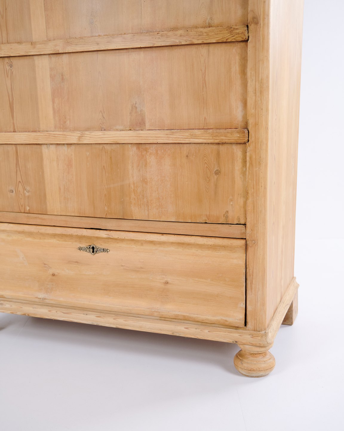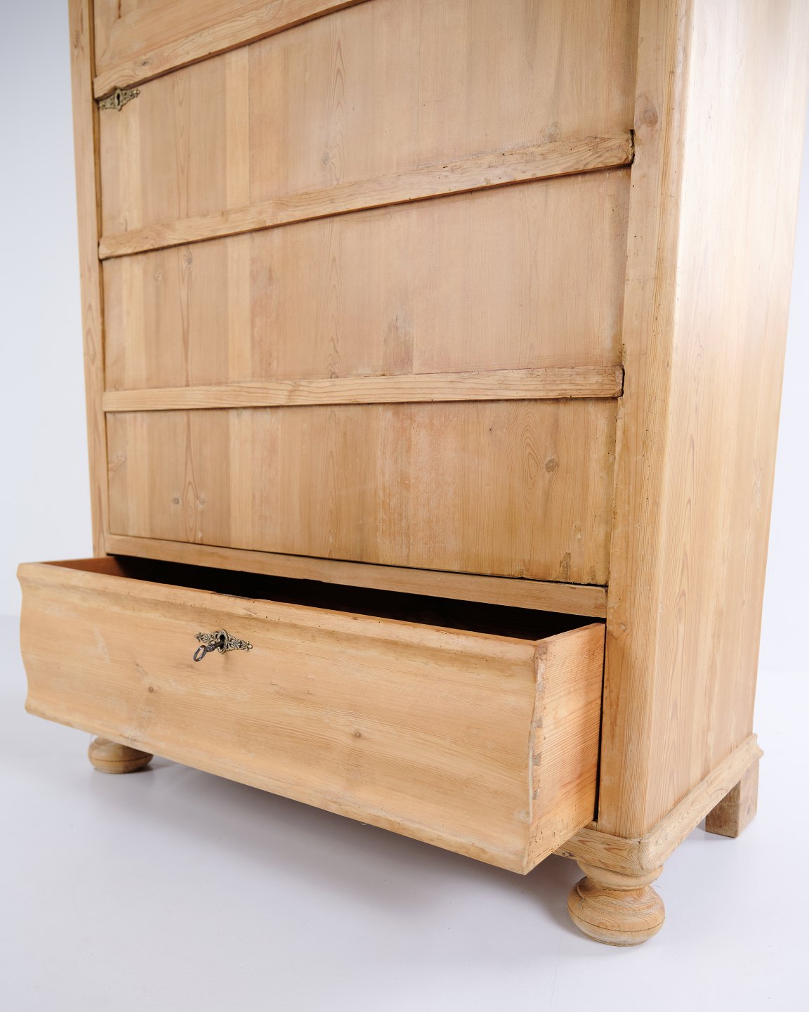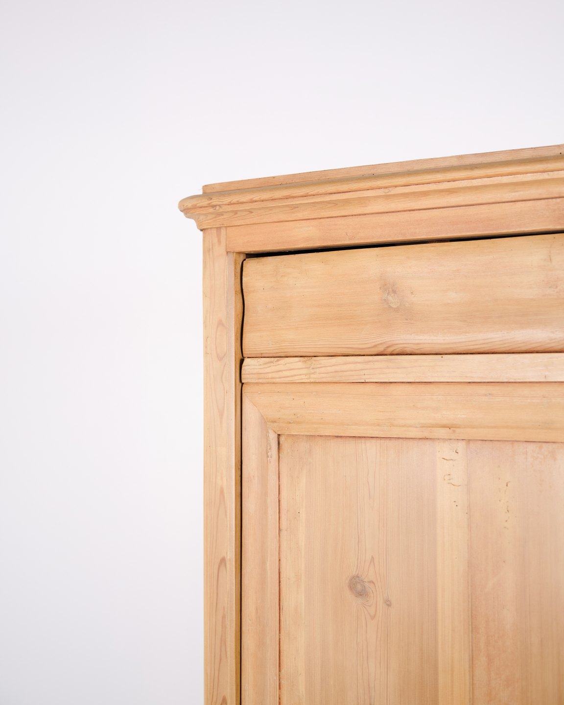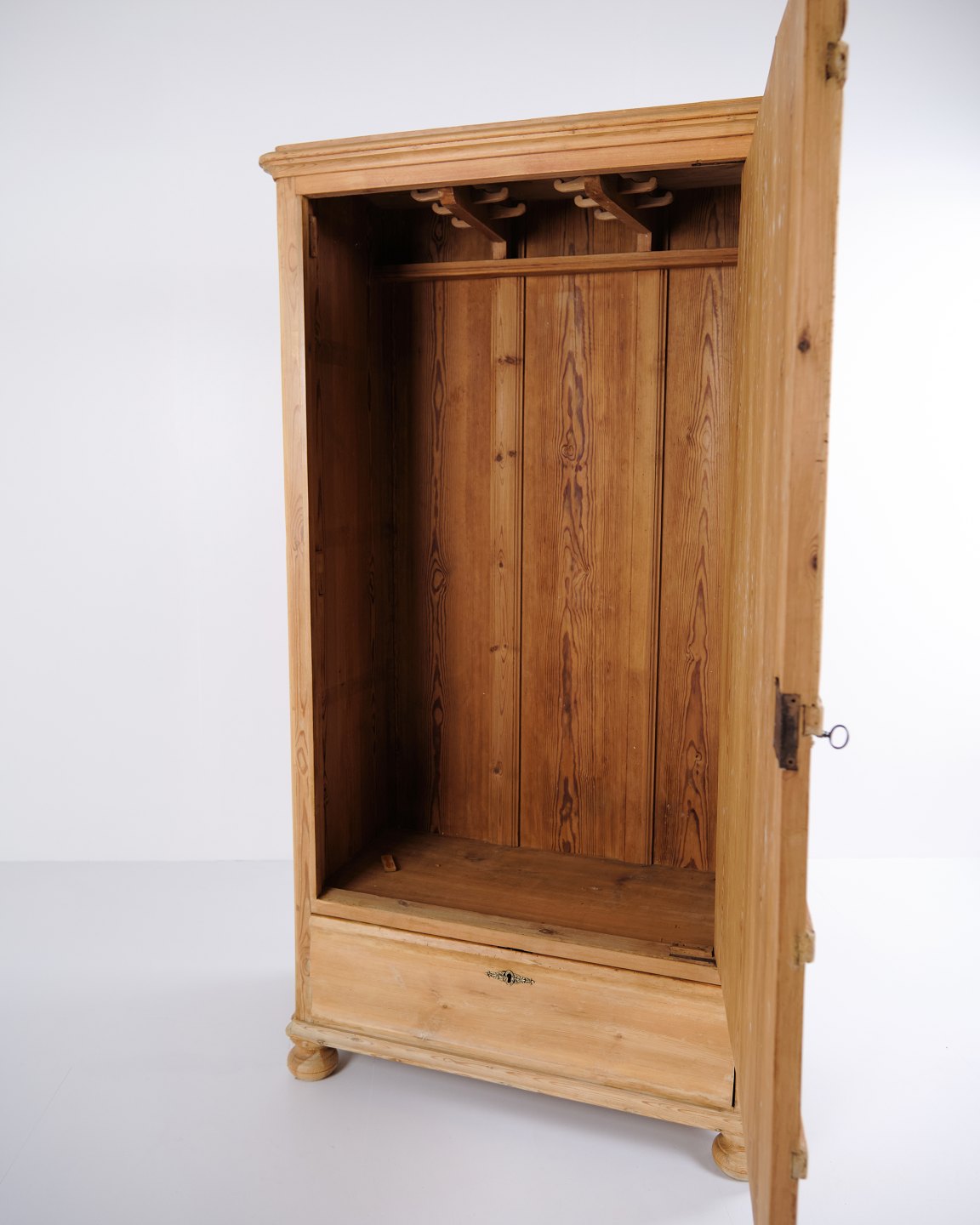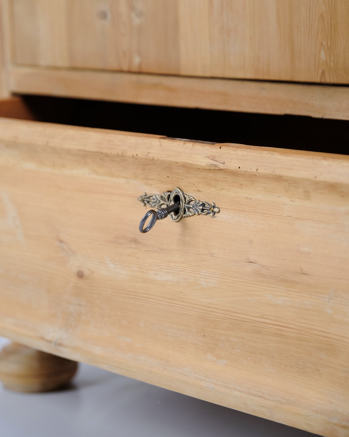 Chamber cabinet from the early 1900s, crafted in pine wood with a simple, classic design. The cabinet stands on round legs and features a front door and a practical lower drawer, providing functional storage space.