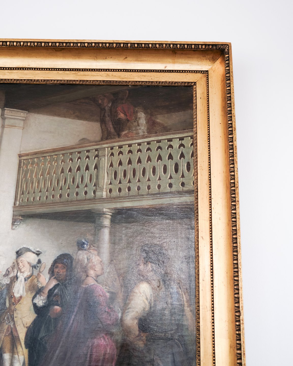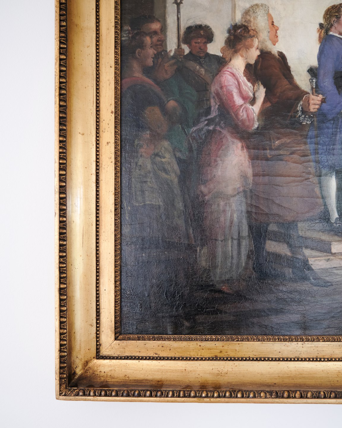 According to Karl Madsen (1905), Marstrand worked with great care on the composition, supported by numerous studies and drawings. He specifically describes how prominent characters were placed in the scene – including the talkative officer with a feathered hat and the proud noblewoman, both given central positions.
